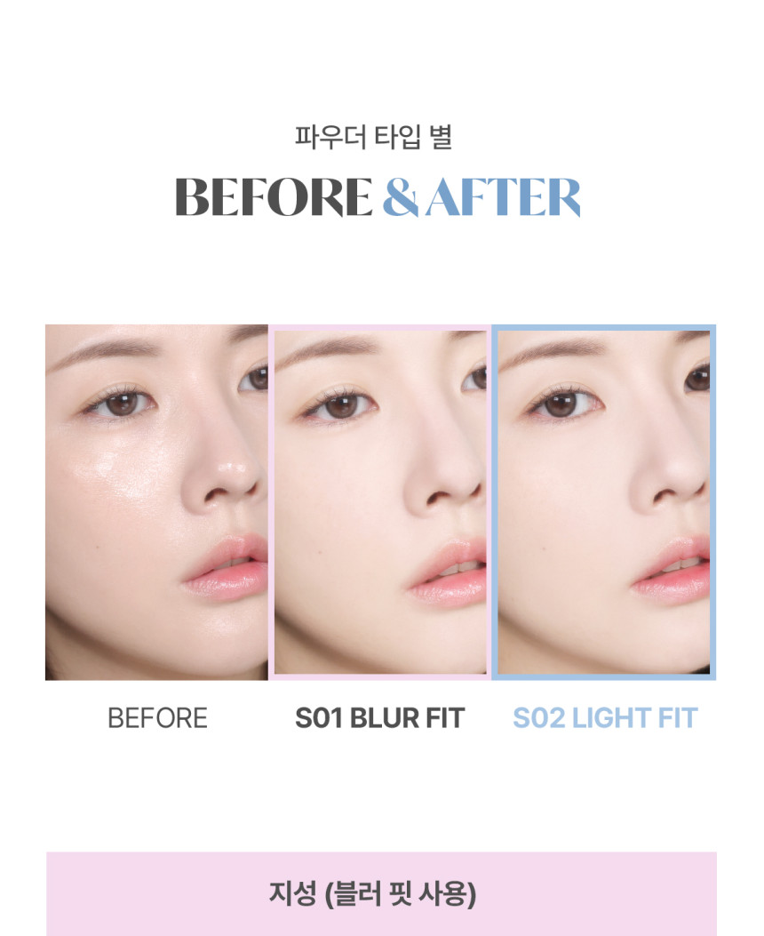 Say goodbye to unwanted shine! S01 Blur Fit effectively adsorbs excessive oil and controls shine, providing a comfortable velvet matte finish that lasts throughout the day. Your skin will feel fresh and look perfectly matte without any dryness.