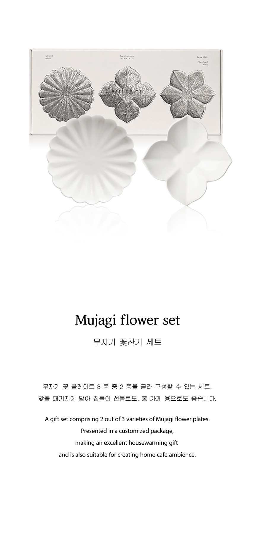 Bring timeless elegance to your dining table or home café with the MUJAGI Flower Gift Set. Thoughtfully curated, this set includes two of three beautifully handcrafted MUJAGI Flower plates, making it a perfect housewarming gift or a stylish addition to your own collection.