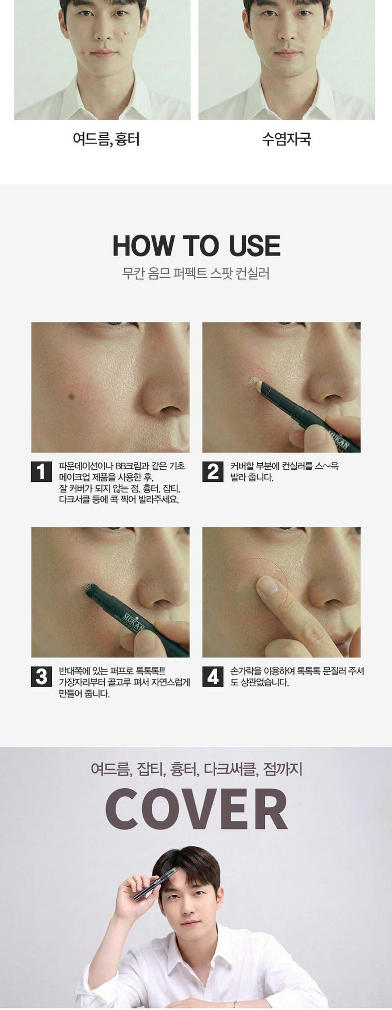 - Optional Base: This spot concealer can be used alone for targeted correction or as a perfect companion under MUKAN Homme BB cream for a more uniform base and complete facial coverage.