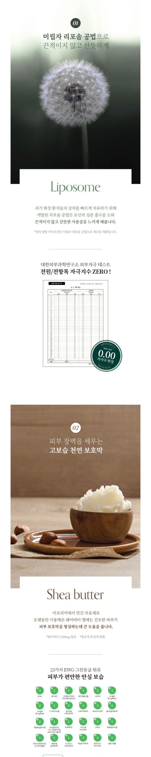 The liposome method, which was developed in the past to quickly heal the wounds of burn patients, helps absorb the ingredients of the lotion and provides a non-sticky, refreshing feeling.