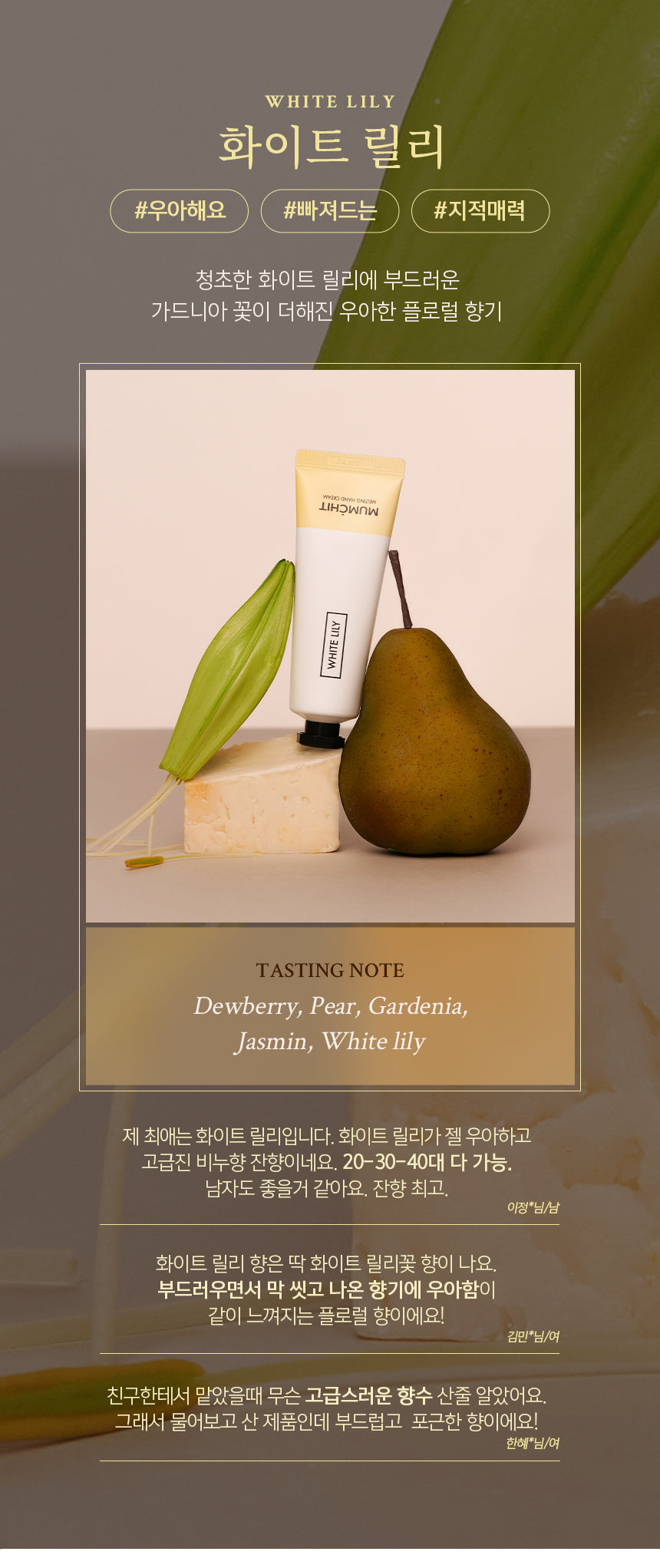 With MUMCHIT’s Melting Hand Cream, my skin drinks in the essence of blooming white lilies. The softness reminds me of sunny afternoons spent wandering through Parisian gardens.