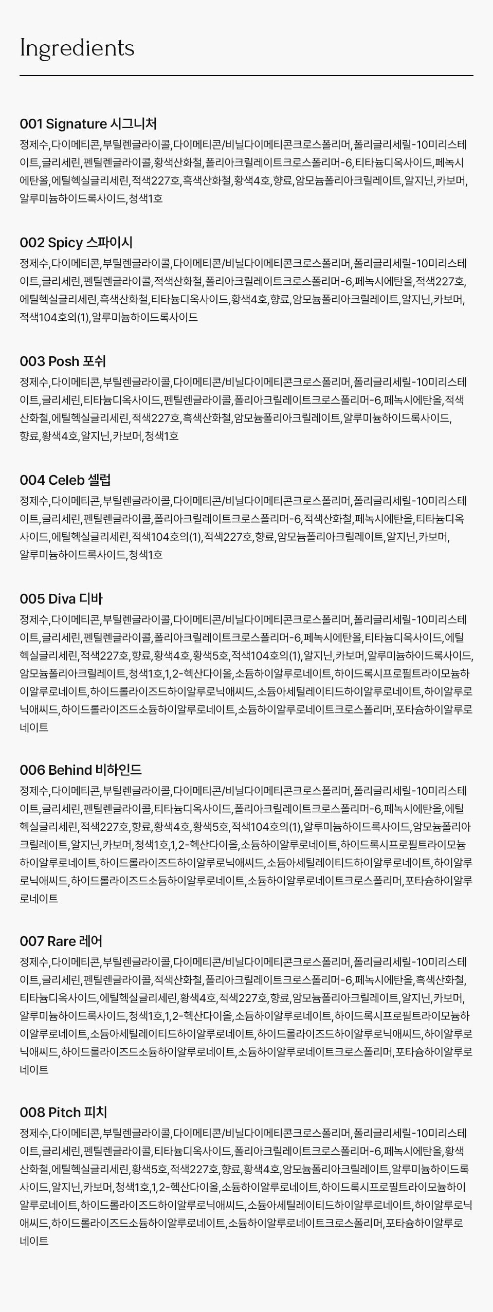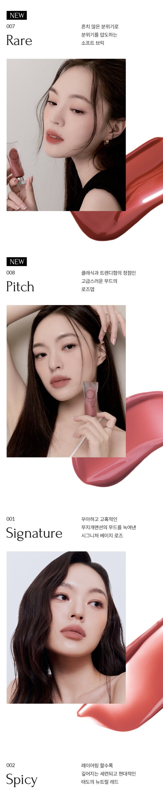 - 002 Spicy: Layered neutral red, epitomizing sophistication and modernity