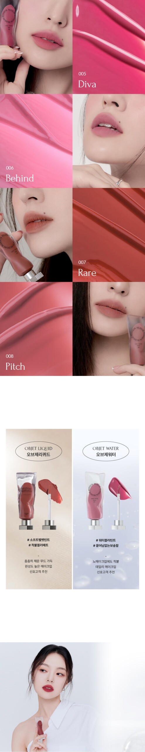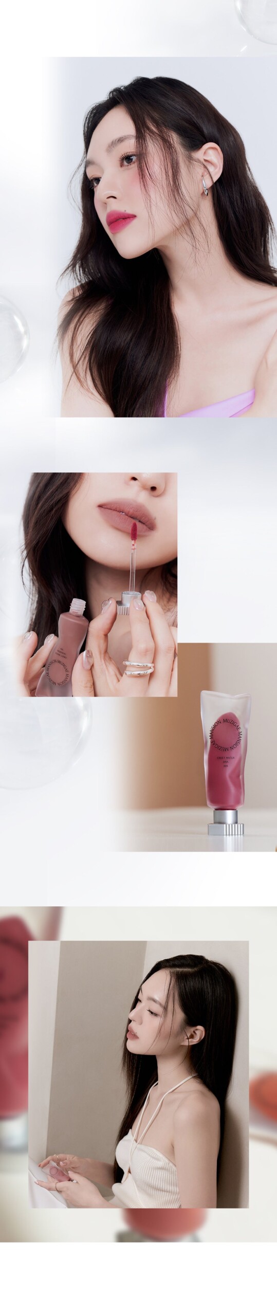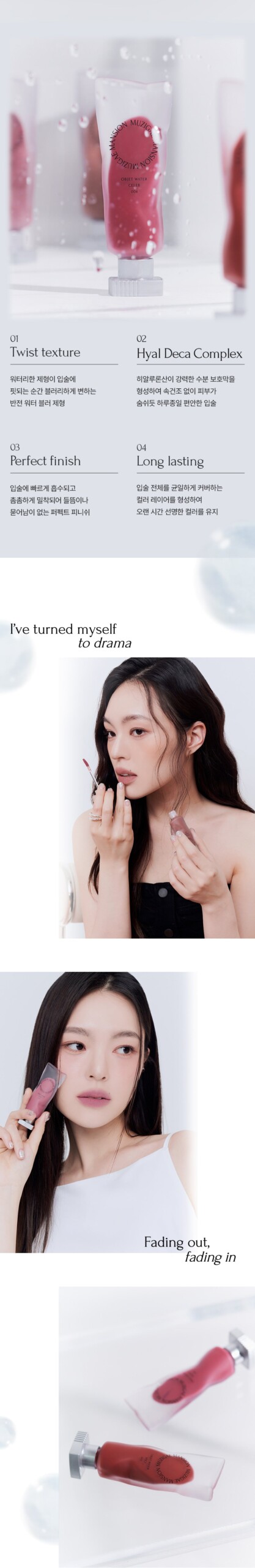 Experience our unique reverse water blur formula, transforming from watery to blurry, perfectly complementing your lips.