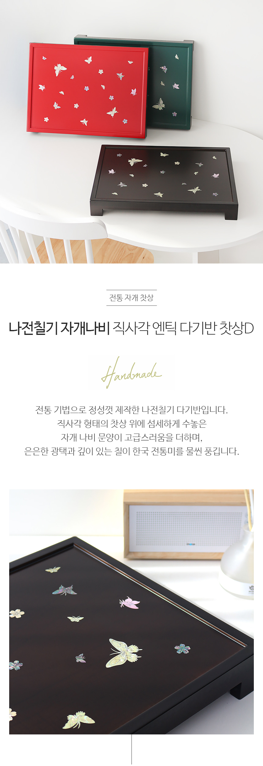 Najeonchilgi Mother-of-Pearl Butterfly Tea Tray – Traditional Korean Lacquerware
