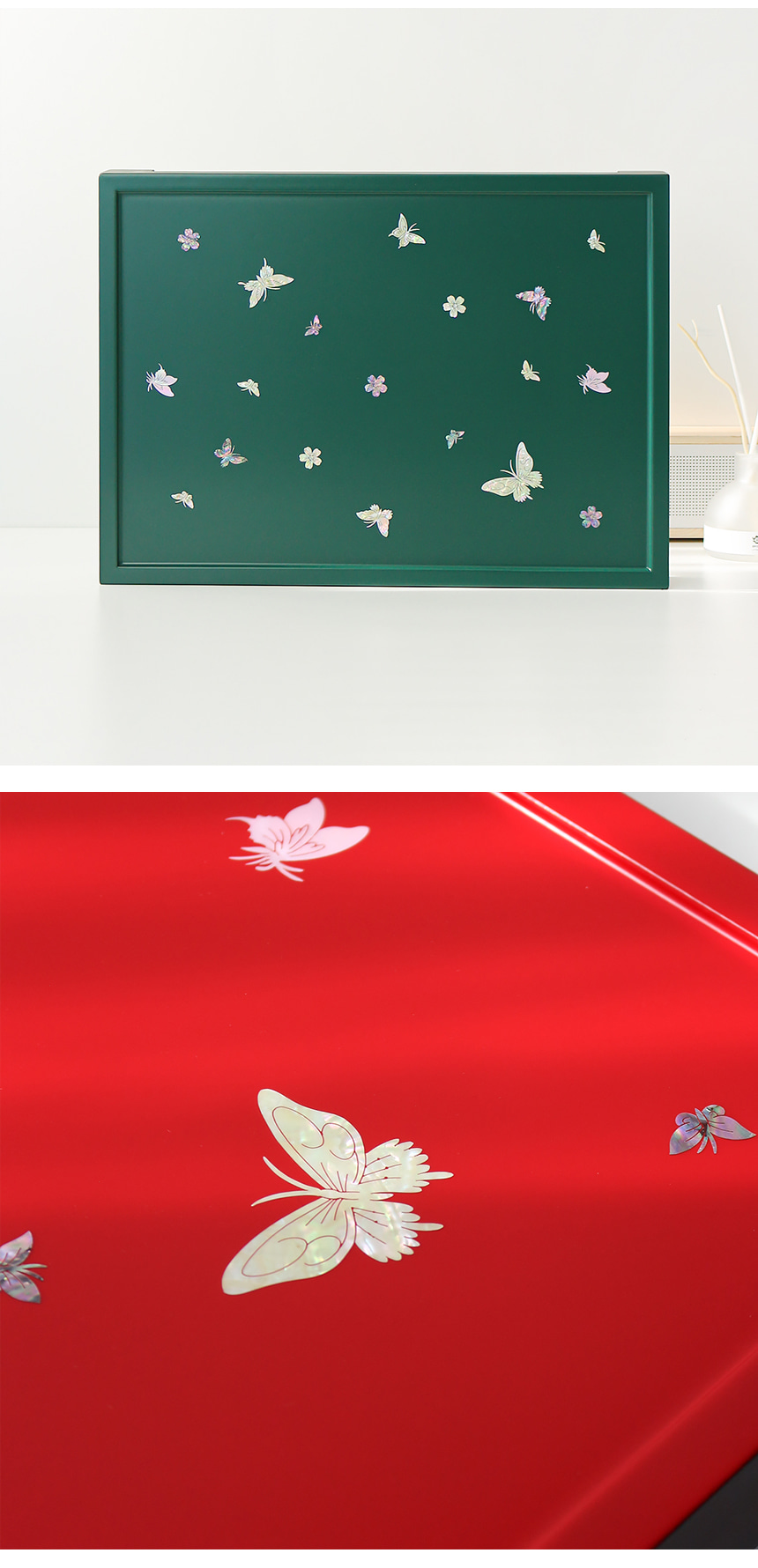 Butterflies in Korean culture symbolize joy, happiness, and conjugal bliss. Combined with floral motifs, they represent wishes for a happy and prosperous life. This makes the tray an ideal gift for weddings, housewarmings, or special celebrations.