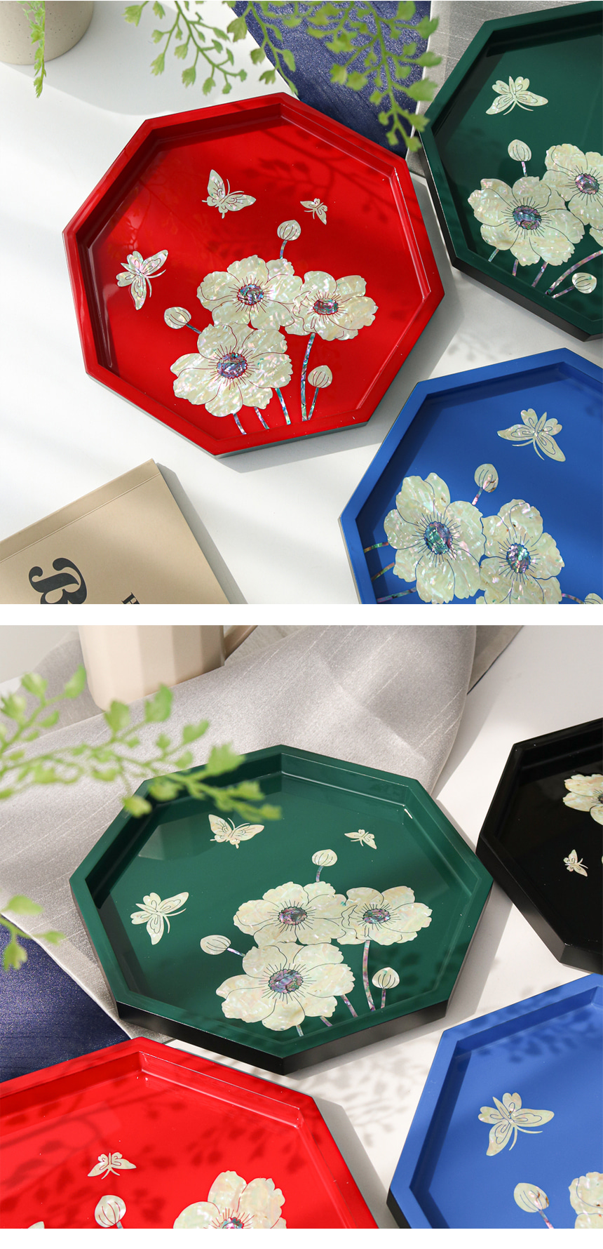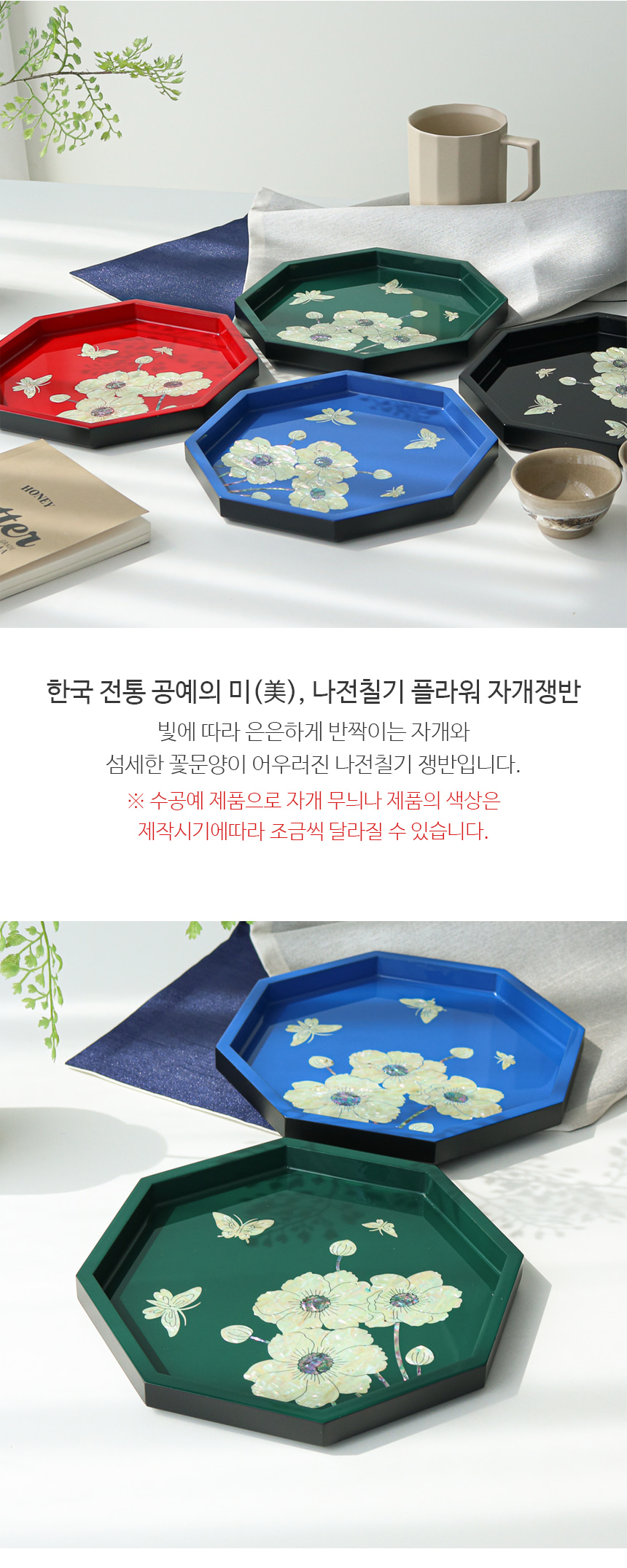 Najeonchilgi Mother-of-Pearl Flower Octagonal Tray – Traditional Korean Lacquerware