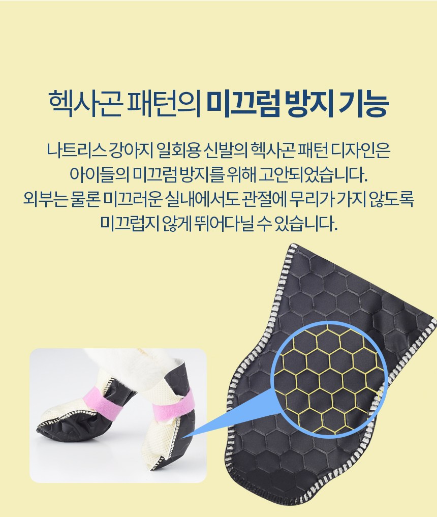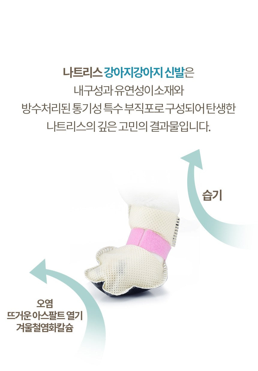 Natress special coating film has excellent stability, waterproof function and durability, so it safely protects the dog’s paws from external stimuli.