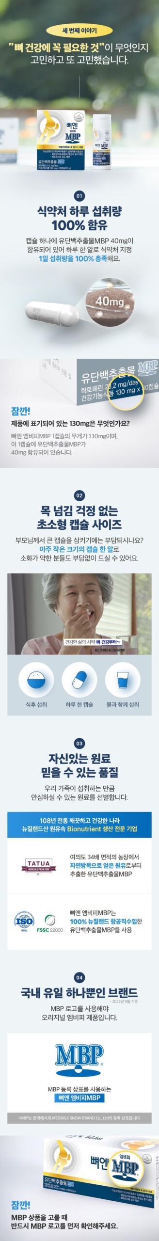 - Convenient Dosage: Each capsule contains 130mg of the formula, including 40mg of MBP, which meets 100% of the daily intake standard set by the Ministry of Food and Drug Safety.