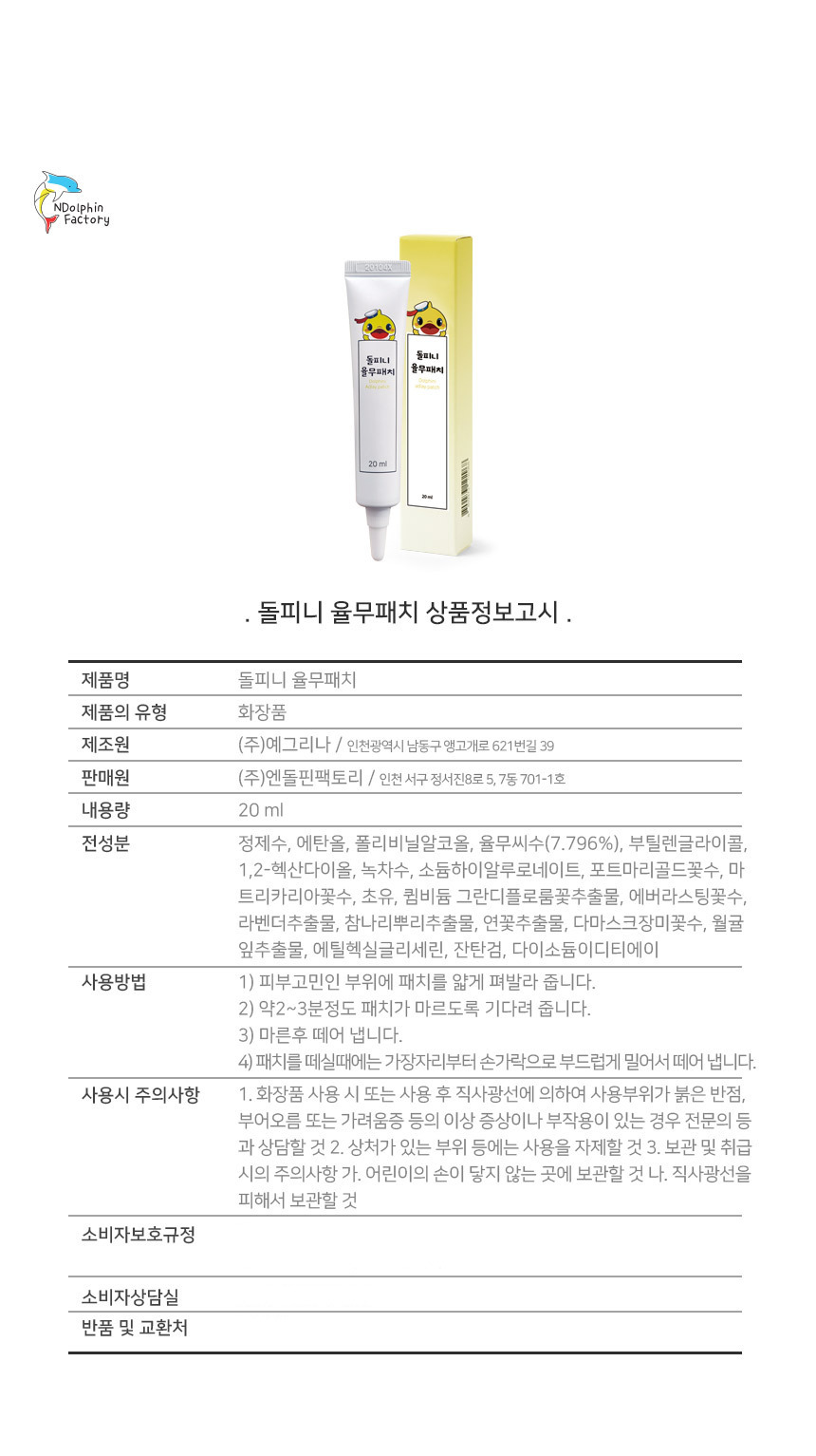 Experience the natural soothing power of Yulmu with the NDolphin Factory Dolphini Yulmu Patch. Its gentle, plant-based formula makes it an ideal choice for those seeking effective skin relief.