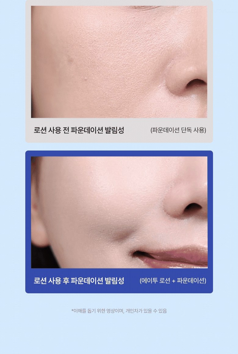 | Before Lotion Use | Foundation application (Foundation alone) reveals visible pores and uneven texture. |