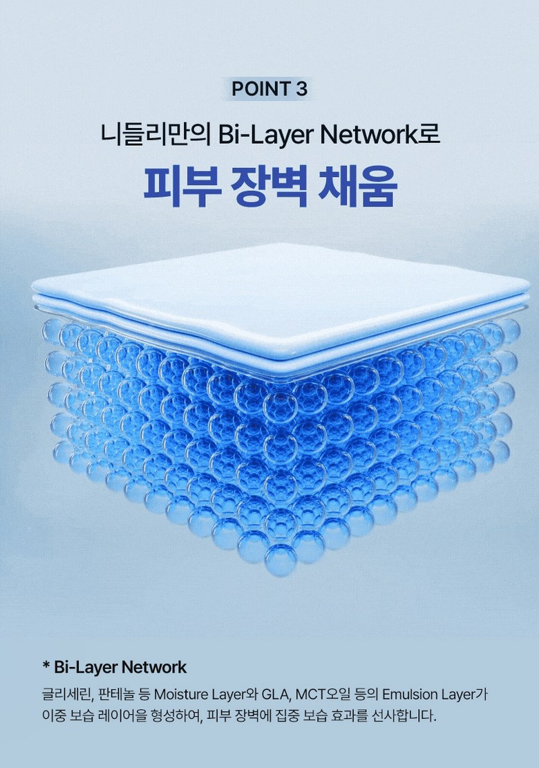 At the core of NEEEDLY A to Lotion’s efficacy is our innovative Bi-Layer Network. This advanced system creates a dual moisturizing layer for intensive barrier care: