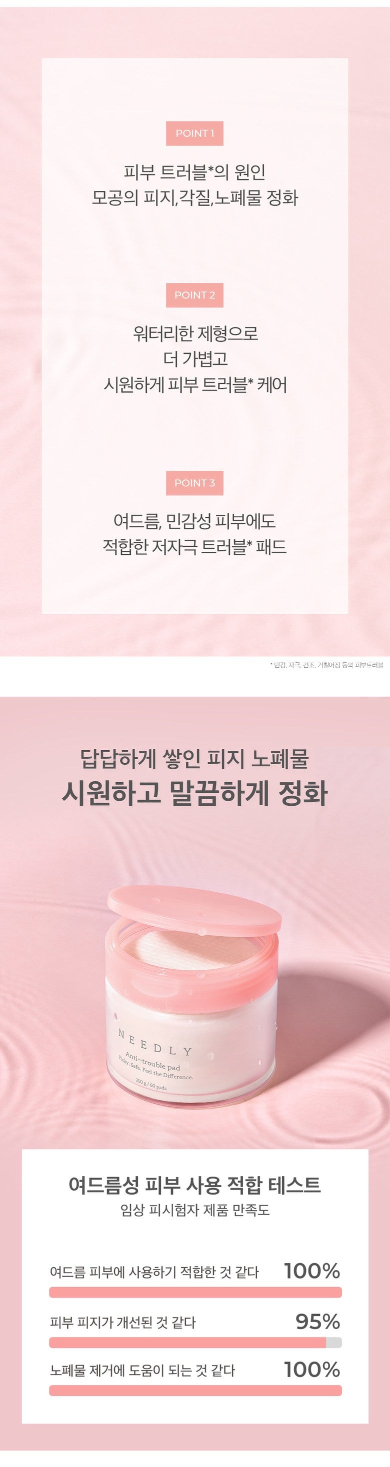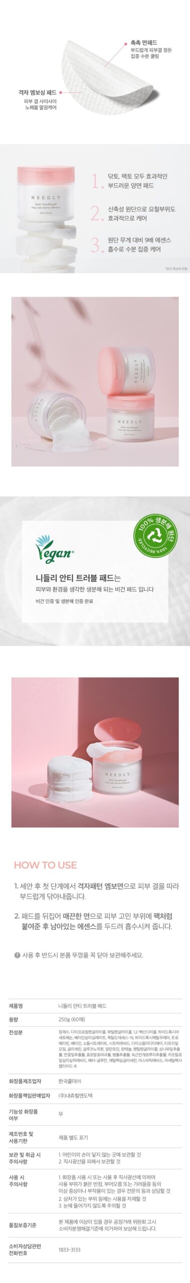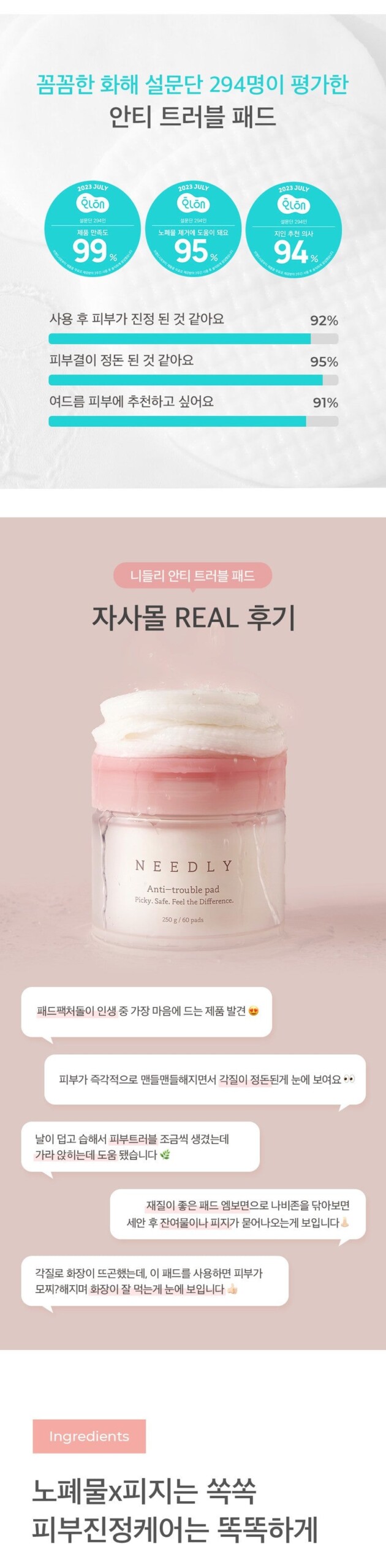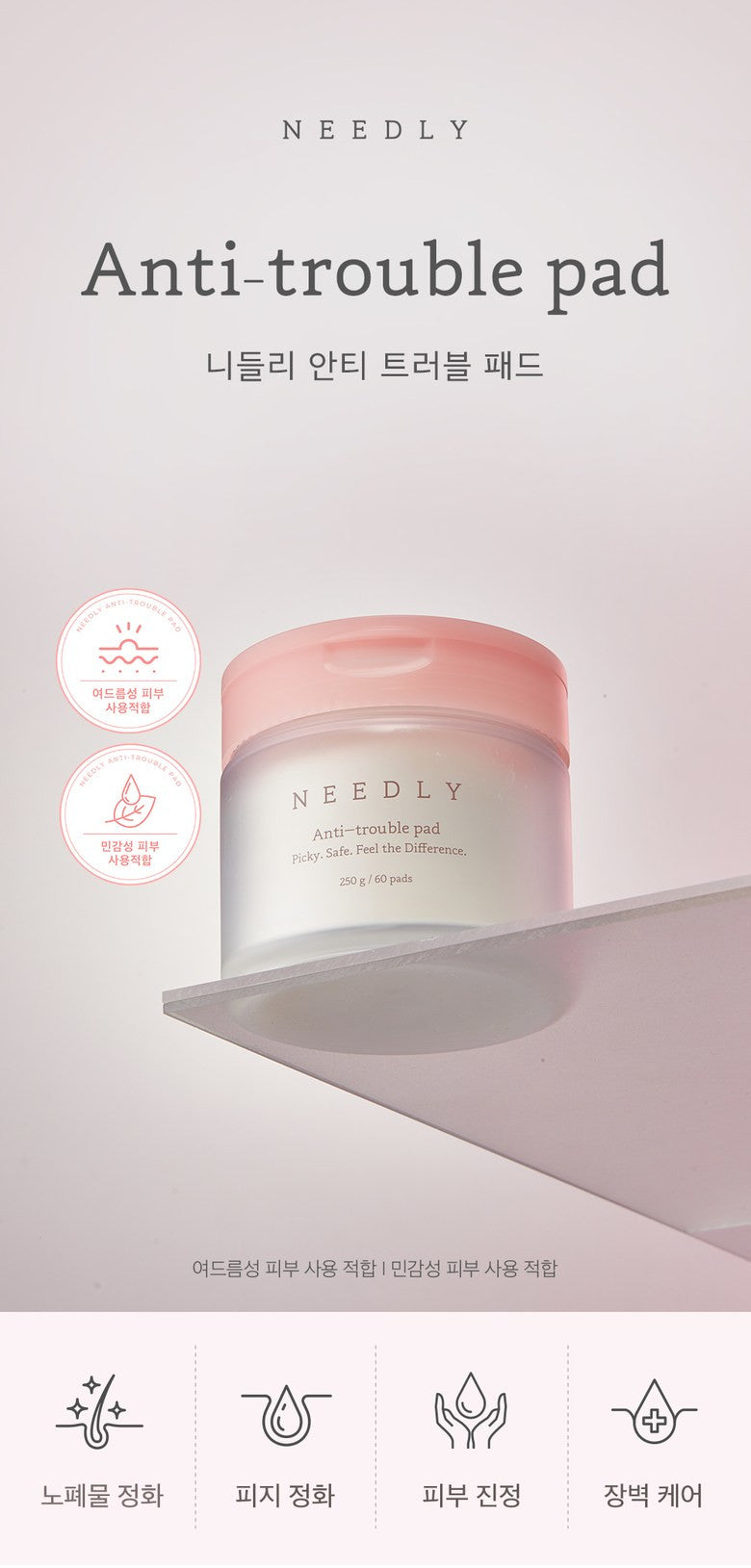 本当に、これを使う前は敏感肌であることに常に悩まされていました。しかし、「NEEDLY Anti-Trouble Pads」を試してみると、その変化に驚きました。確かにパッドが持つクーリング効果には半信半疑でしたが、数回使用しただけで見事な清涼感を実感!浄化された気分になりますし、無駄な皮脂もさっぱり取れて、お肌の調子まで良くなってきたようです。ただ、自分の場合はわずかな赤みも引いたので、本格的なお手入れには十分候補になるでしょう。この製品の良さはいろんな国でも受け入れられる予感。今では友人にも強力推薦しています。