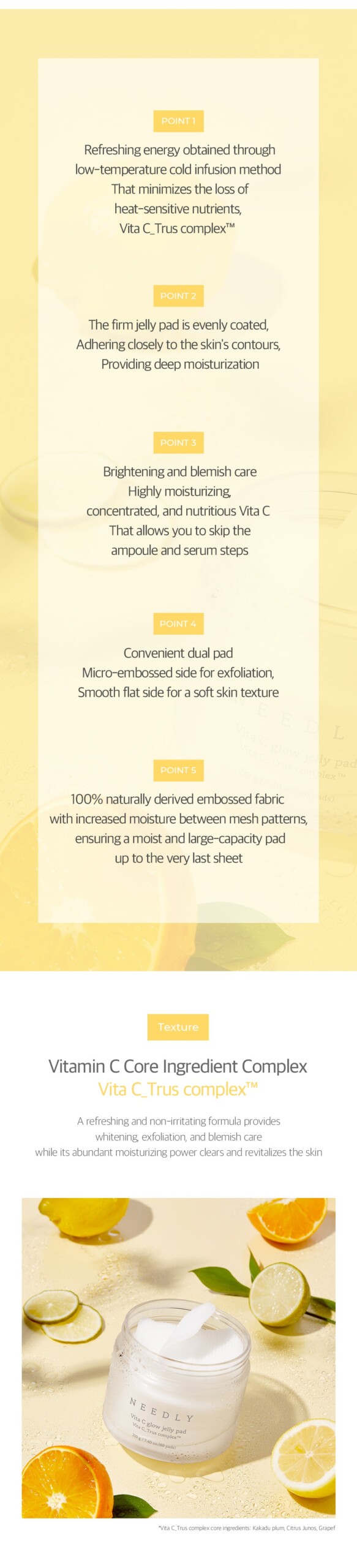 The firm jelly pad adheres closely to the contours of the skin, delivering Vitamin C full of nourishment