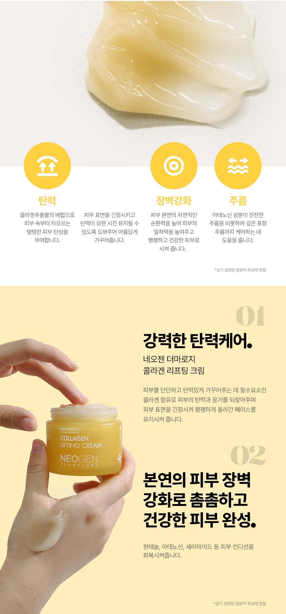 The Neogen Dermalogy Collagen Lifting Cream is formulated with Double Collagen (Collagen + Hydrolyzed Collagen) to restore skin firmness, elasticity and natural glow for healthier and tighter skin. This cream helps improve your natural cell turnover cycle and strengthen skin’s barrier to keep the skin smooth and bouncy. Peptides and ceramide are also present to powerfully plump up fine lines, facial lines and wrinkles, while reviving sagging and tired skin.