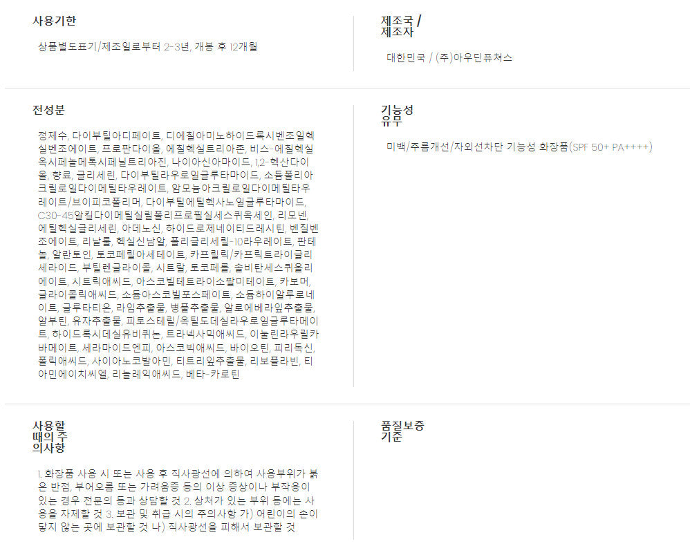 - Niacinamide: A whitening functional ingredient approved by the Ministry of Food and Drug Safety.