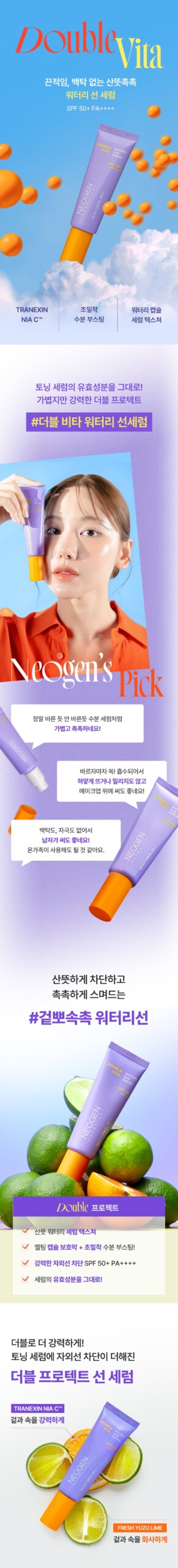 I was a bit wary about trying another sun product, having faced numerous disappointments before. However, after my first use of the NEOGEN Double Vita Watery Sun Serum SPF50+ PA++++, I’m pleasantly surprised! This serum feels incredibly refreshing on my face and it glides smoothly without that sticky feeling most sunscreens leave behind. The non-whitening aspect really appealed to me—I despise looking ghostly. It seems to offer powerful UV protection while keeping skin well-hydrated all day long as promised—I’ve noticed fewer blemishes lately too; maybe the Tranexamic Acid is finally doing its thing? All in all, this one’s earned a solid spot in my morning routine!
