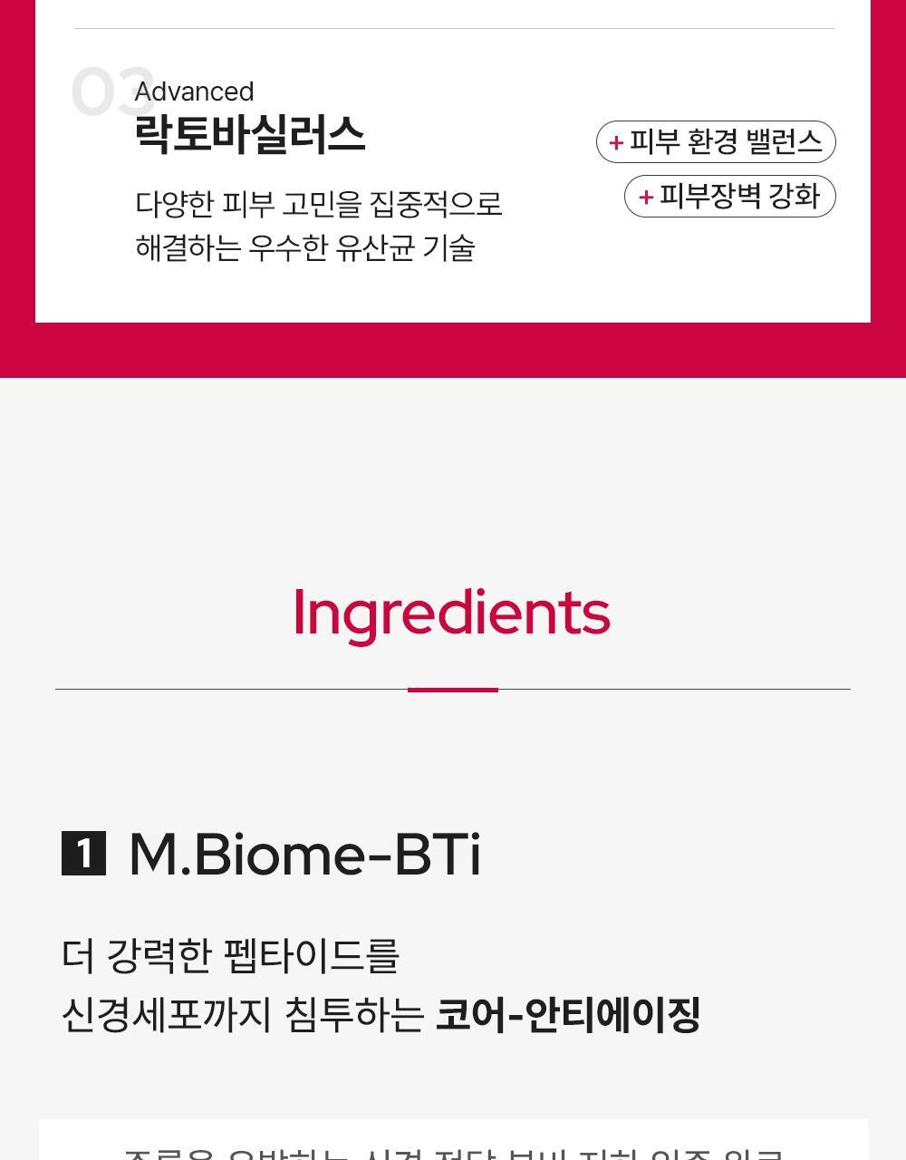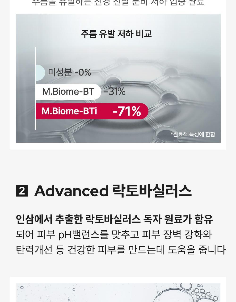 • Lactobacillus: Balances the skin’s environment and strengthens the skin barrier.