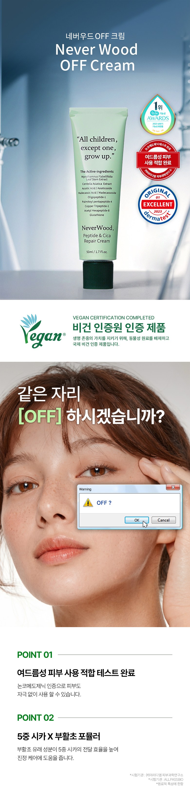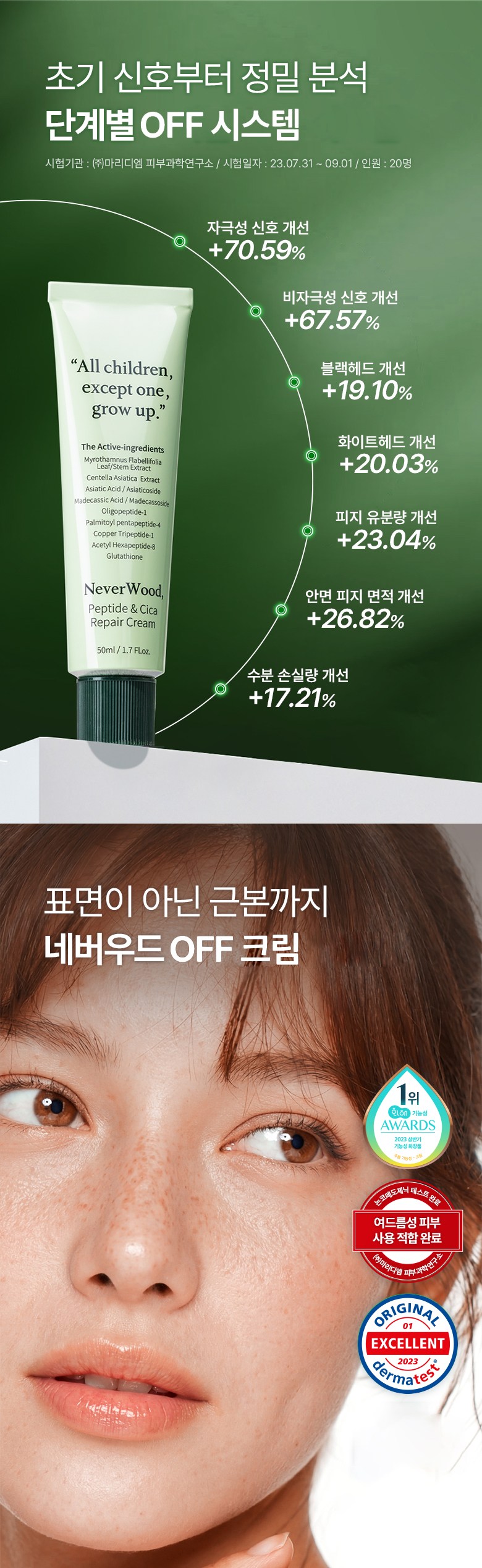 Experience the power of NeverWood Peptide & Cica Repair Cream, a dermatologist-tested formula that hydrates, firms, and soothes the skin. Awarded the DermaTest Excellent certification and Non-Comedogenic tested, this cream is perfect for sensitive and acne-prone skin.