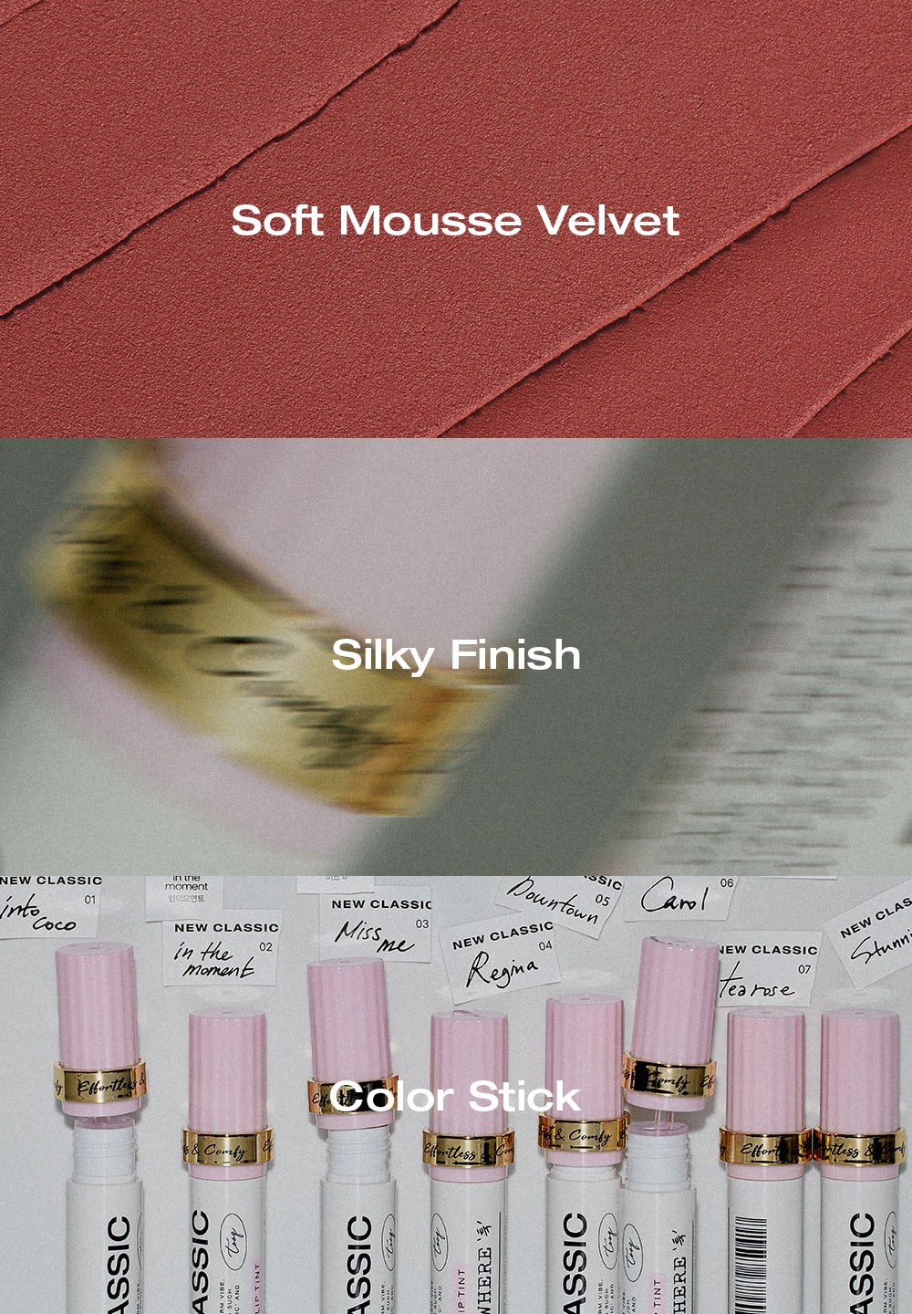 Transform your lips with the New Classic Velvet Tint—perfect for achieving a smooth, velvety look that lasts all day.