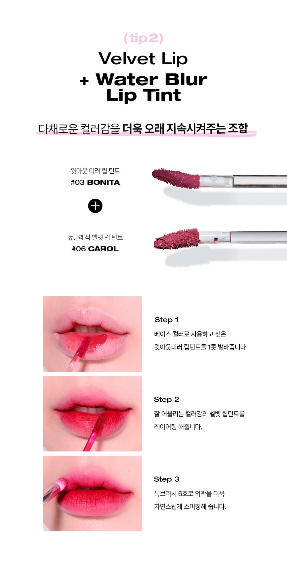 - Mirror Lip Tint 03 + Velvet Lip Tint 06