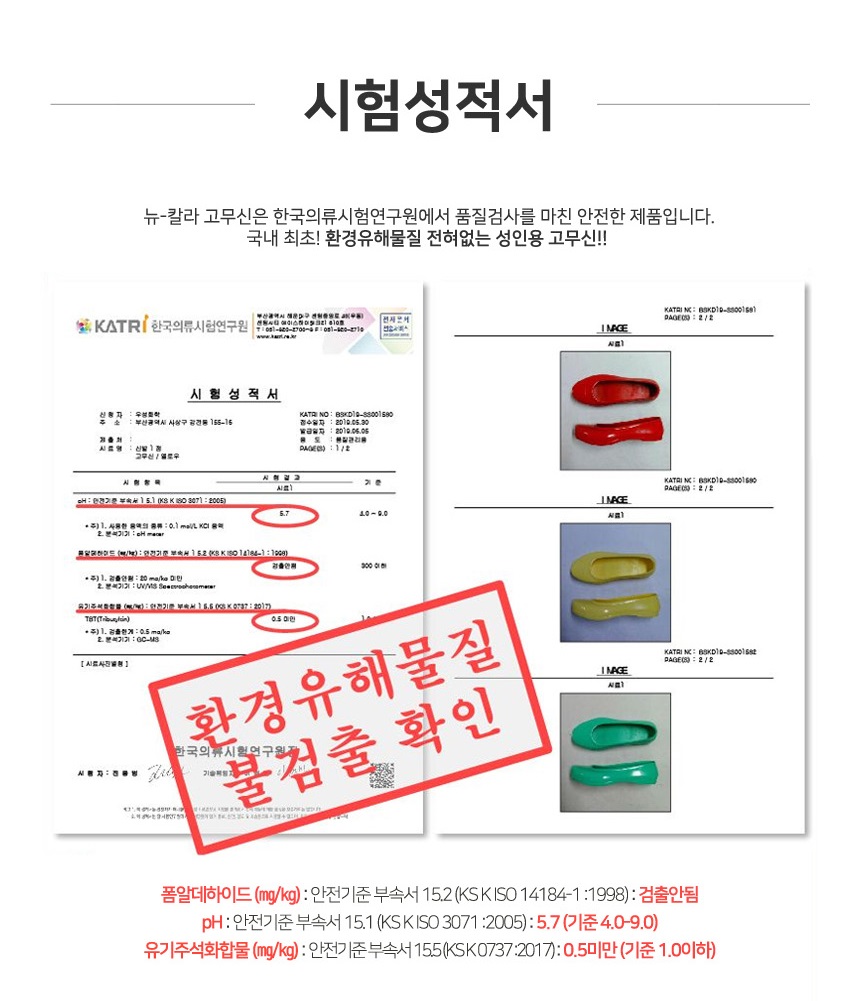 Tested and certified safe by the Korea Apparel Testing & Research Institute (KATRI) — no hazardous substances detected.