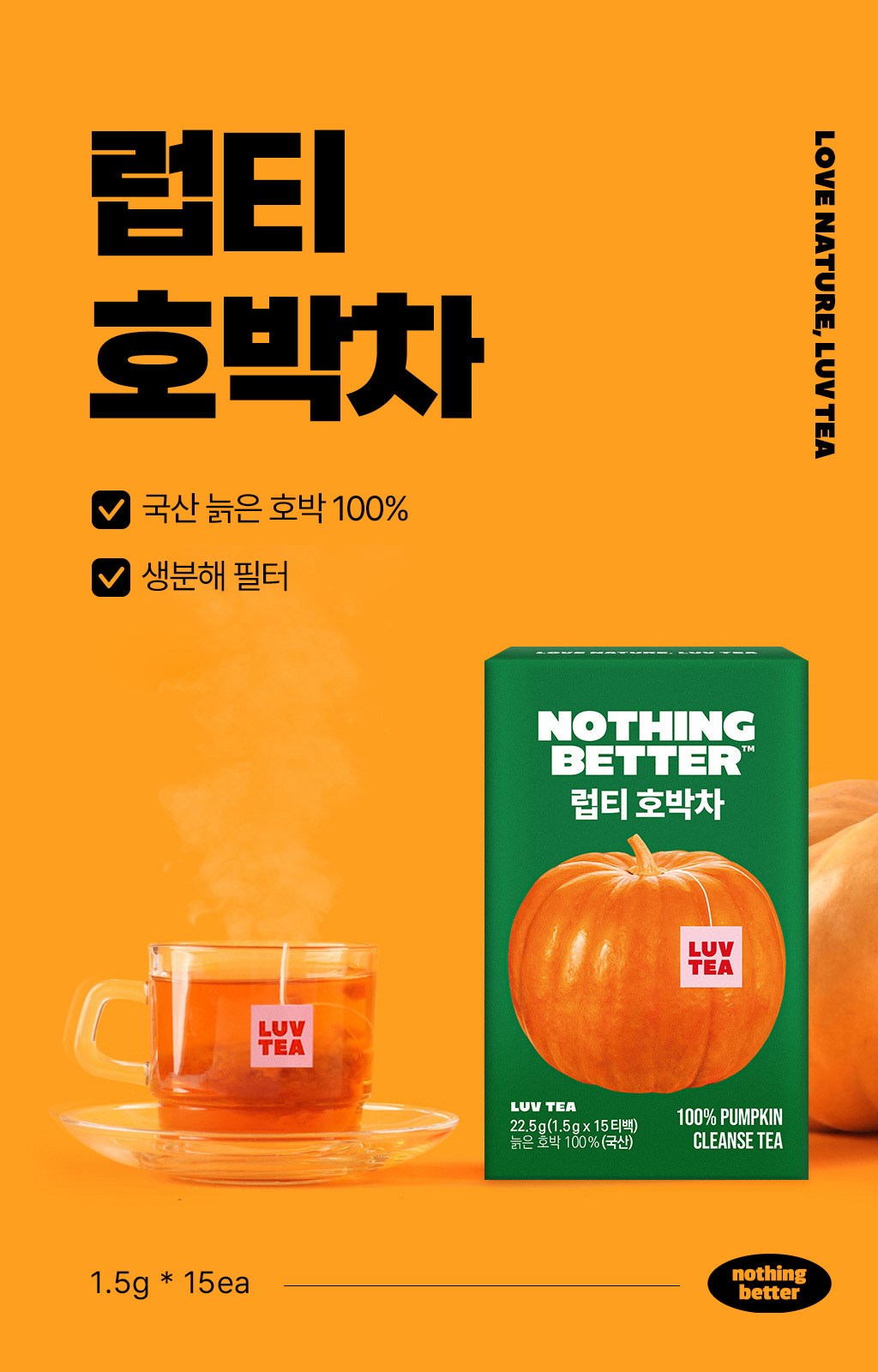 Discover the simple pleasure and unique warmth of NOTHING BETTER Luv Tea Pumpkin. Add this exquisite Korean wellness tea to your daily ritual today!