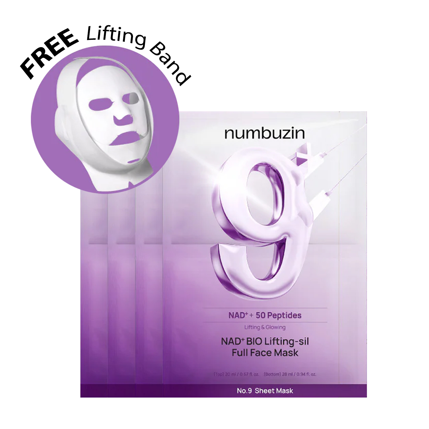 Numbuzin No.9 NMN Bio Lifting Sil Full Face Mask 4 Sheets – Your Ultimate Lifting & Glowing Solution