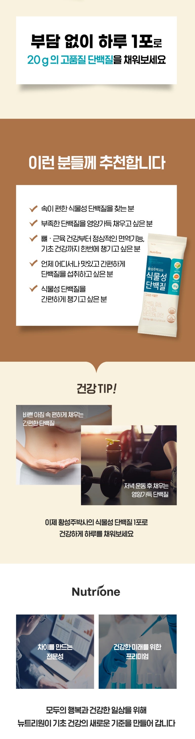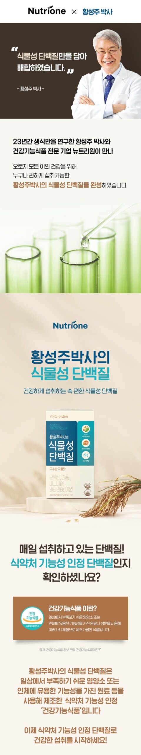 Dr. Seongju Hwang’s vegetable protein is a functional food approved by the Ministry of Food and Drug Safety, manufactured using nutrients that are easily lacking in daily life or raw materials with useful functionality for the human body.