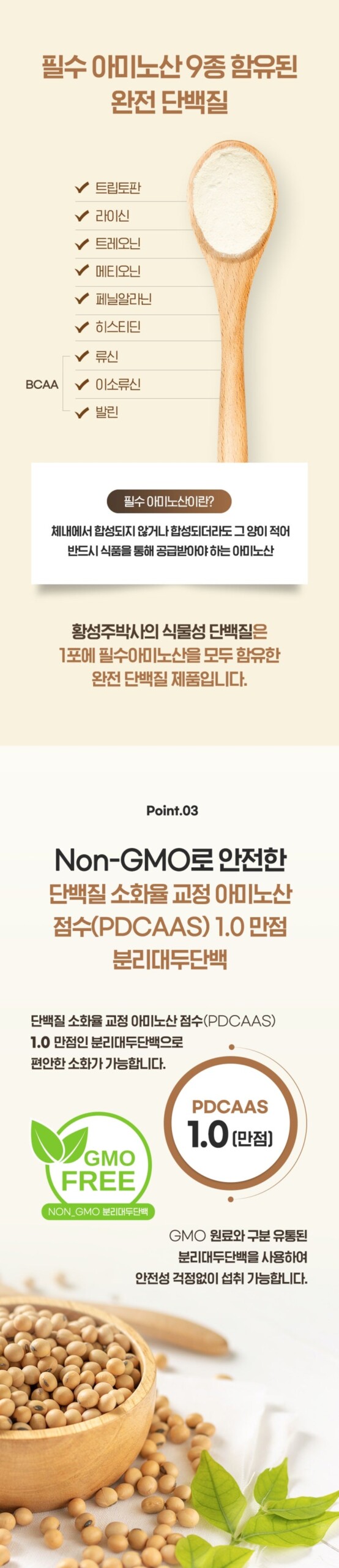 Protein digestibility correction Amino acid score (PDCAAS) of 1.0 perfect soy protein for easy digestion.