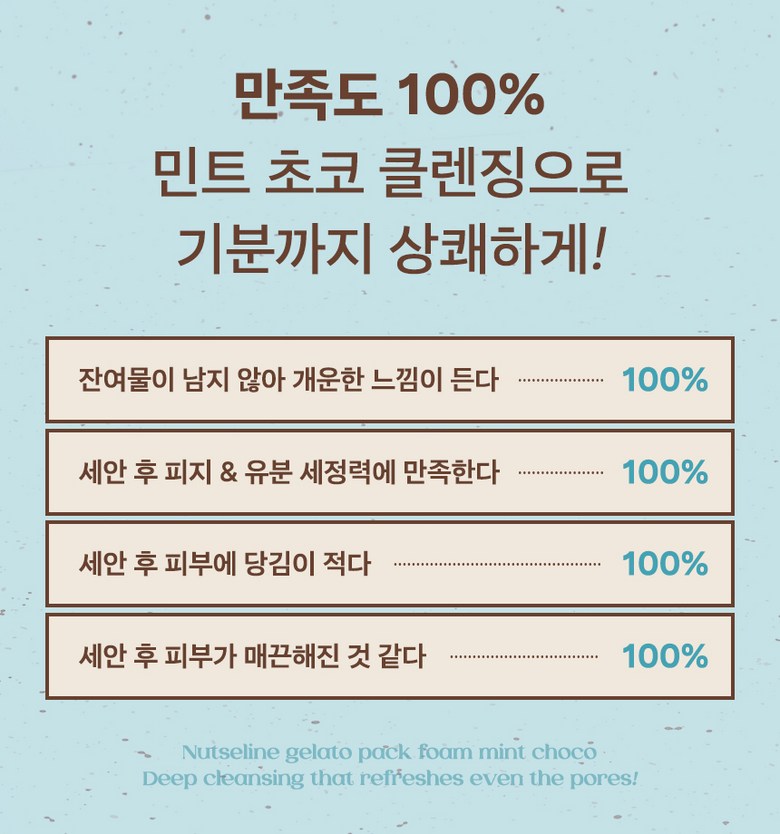 Backed by impressive data, the NUTSELINE Mint Chocolate Cleansing Pack Foam delivers visible improvements from the very first wash. Dive into a cleansing experience that not only purifies but also deeply moisturizes and refines your skin’s texture.