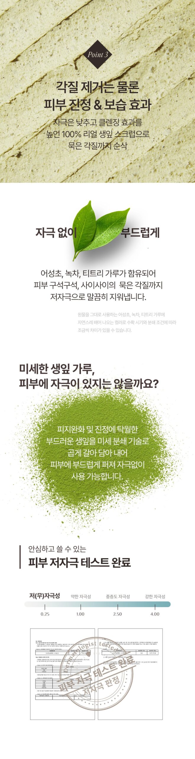 - Gentle on Skin: Houttuynia cordata, green tea, and tea tree powder offer hypoallergenic exfoliation.