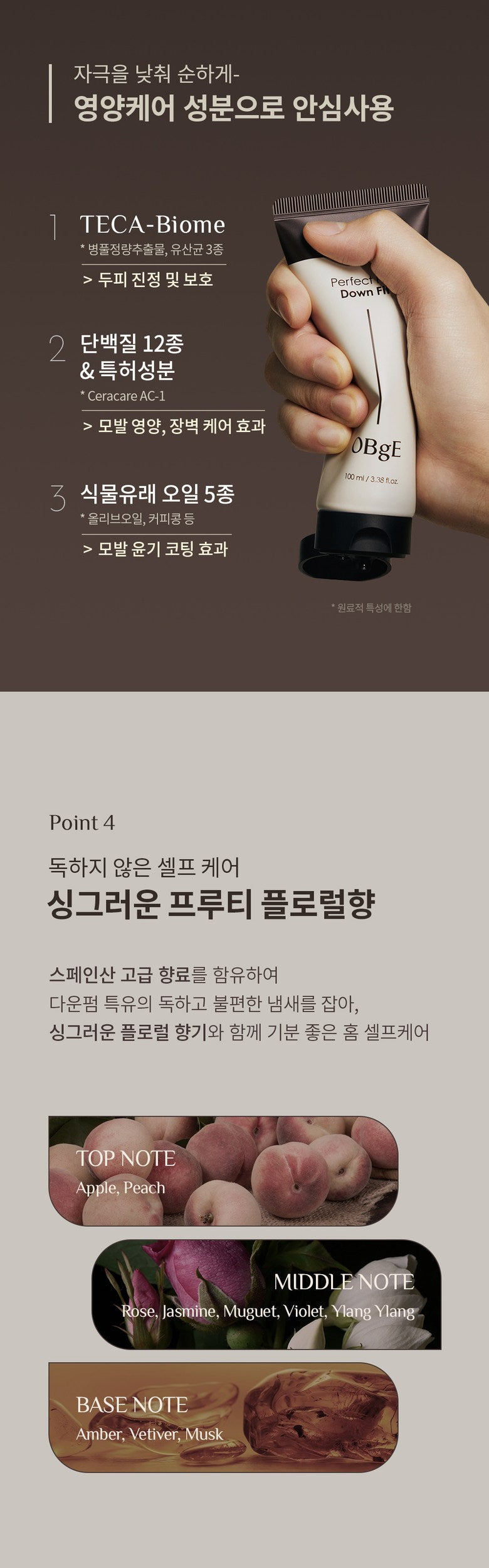 Unlike traditional down perms with harsh chemical smells, OBgE Perfect Pro Down Fit offers a fresh and sophisticated fruity-floral aroma for an enjoyable self-care experience.