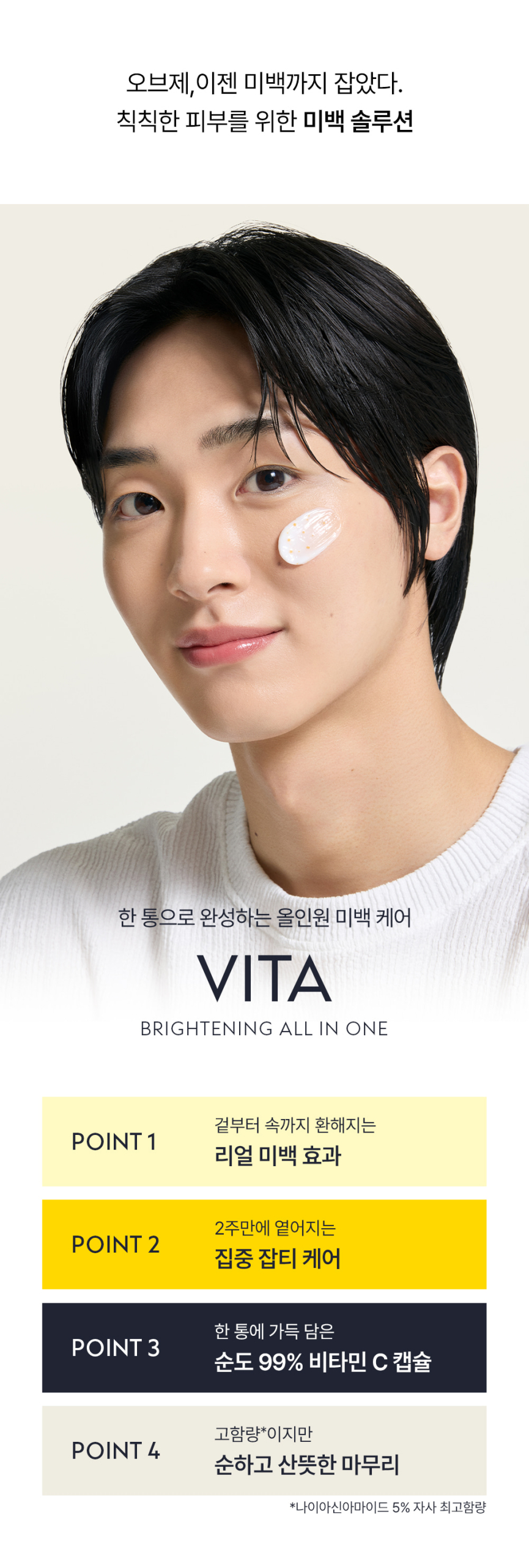 Achieve a brighter, more even complexion with OBGE Vita Brightening All-in-One. This multifunctional essence combines powerful vitamin C derivatives with nourishing ingredients to address dark spots, uneven skin tone, and dullness in one convenient formula.