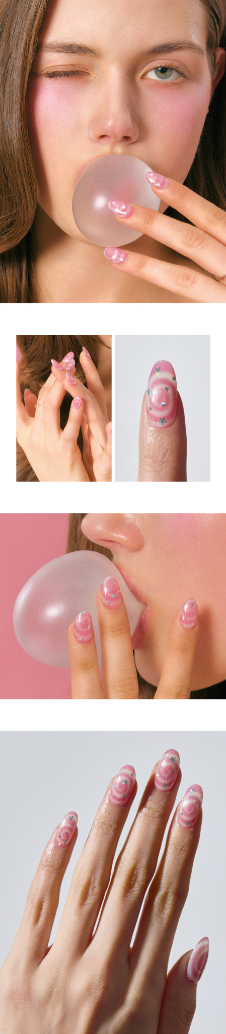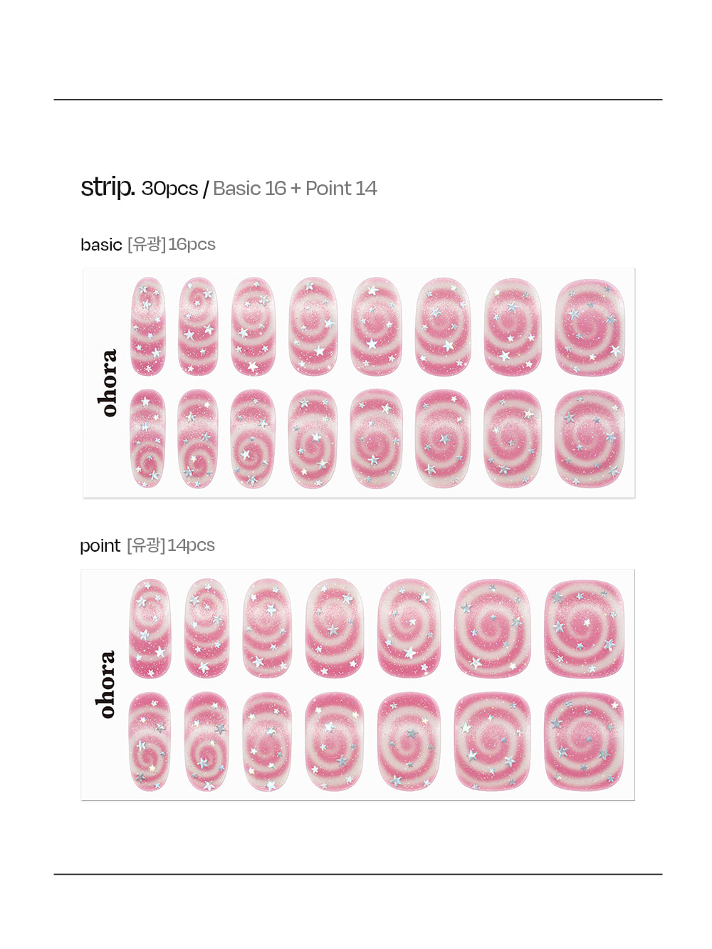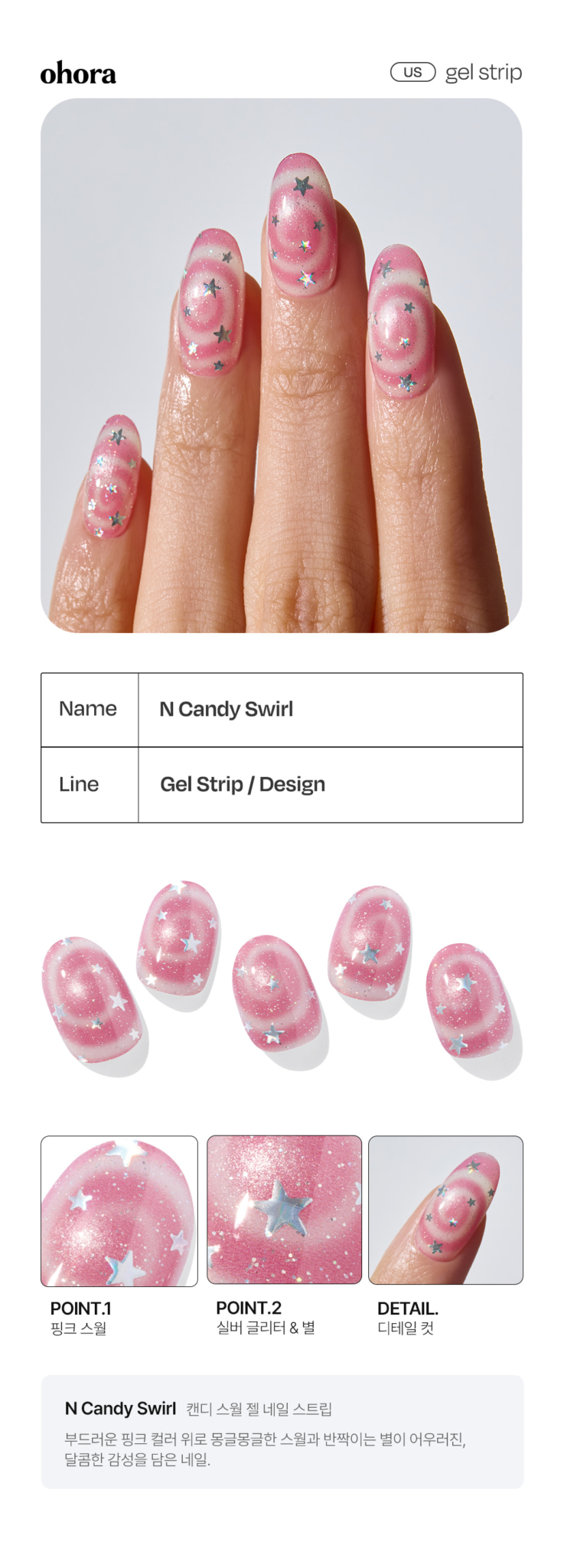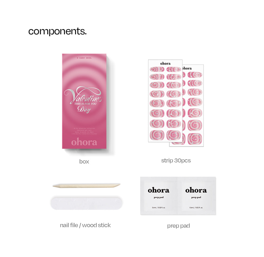 ohora N Candy Swirl Nail is a gel nail strip featuring playful candy-inspired marble designs with pink, purple, and glitter accents. Perfect for Valentines Day or any occasion when you want a fun, kitschy nail look.