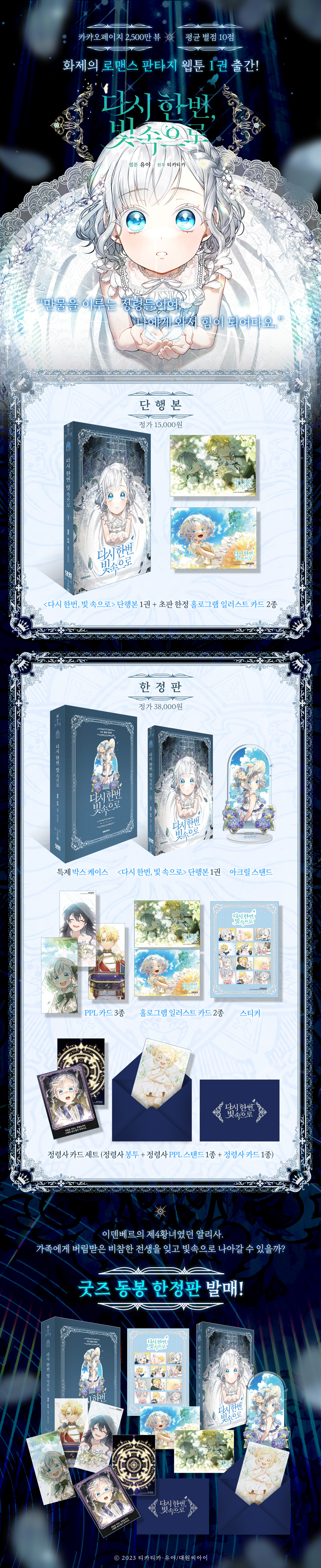 Dive into the enthralling world of “Once Again, Into the Light,” a romantic fantasy that has captured the hearts of millions. This limited edition set is a treasure trove for fans, featuring the main volume encased in a special box, along with a collection of exclusive collectibles.