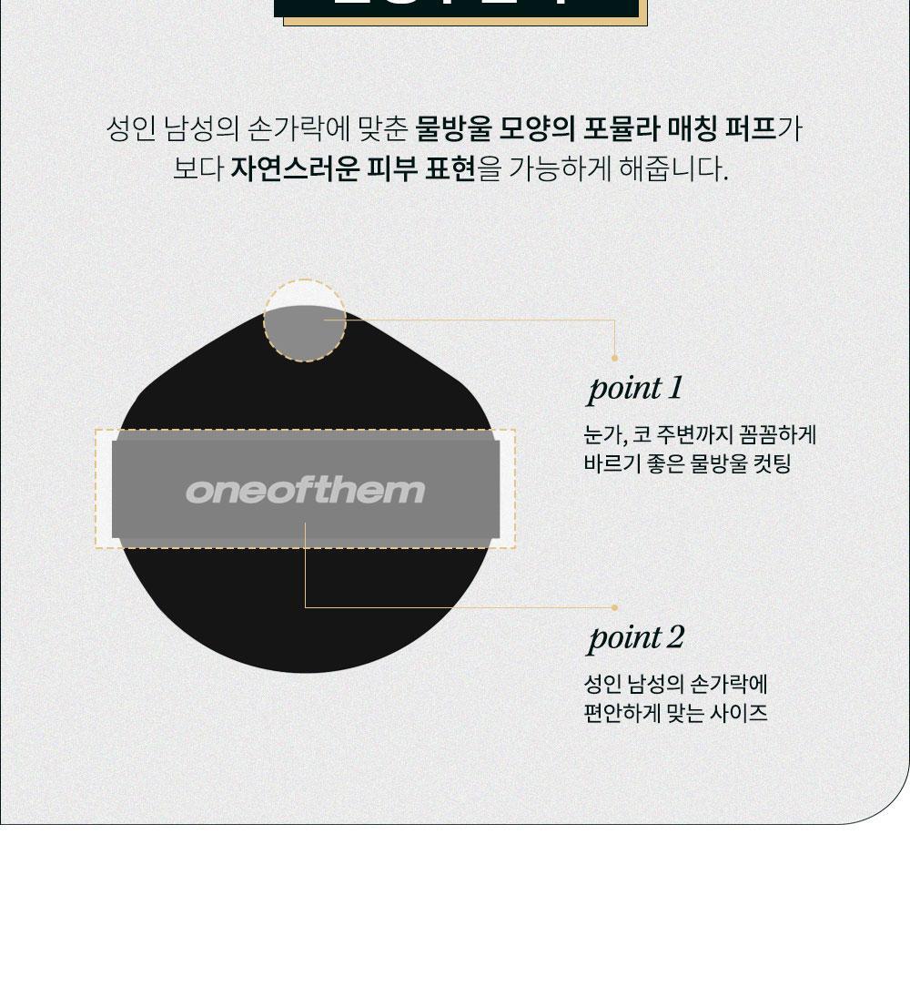 The unique water drop-shaped puff is designed to fit adult men’s fingers perfectly, allowing for precise application, especially around the eyes and nose.