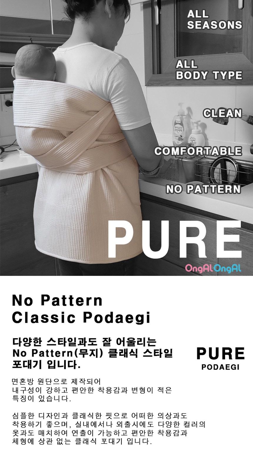 The Ongalong PURE 7bu Podaegi is a premium Korean traditional baby carrier that provides exceptional comfort and security for both parent and baby. Made in Korea with high-quality materials, this podaegi features a unique Y-shaped seat design for stable positioning.