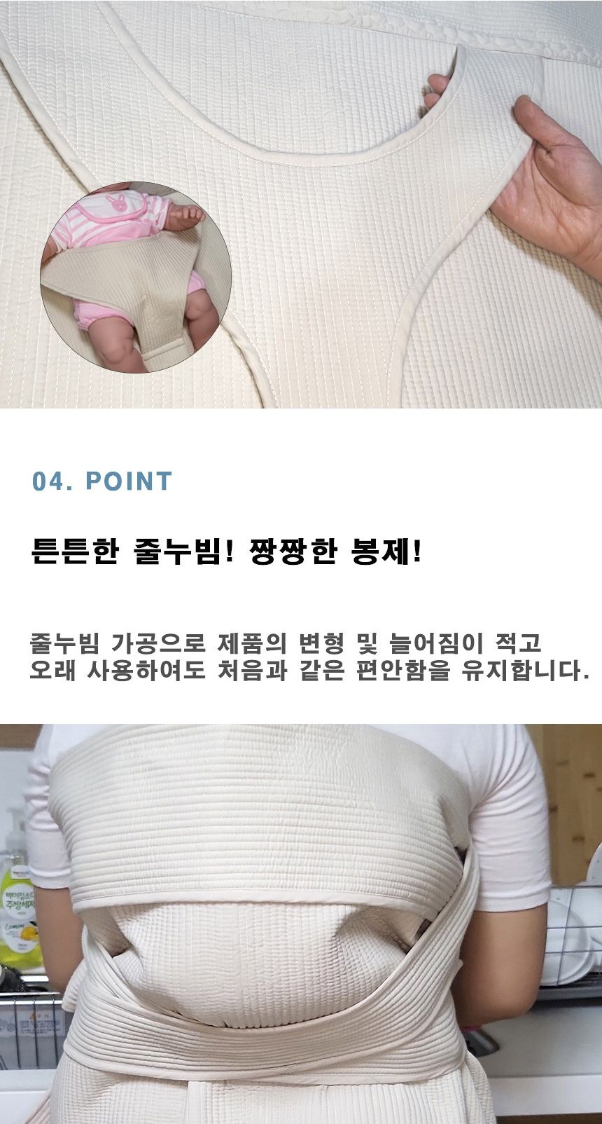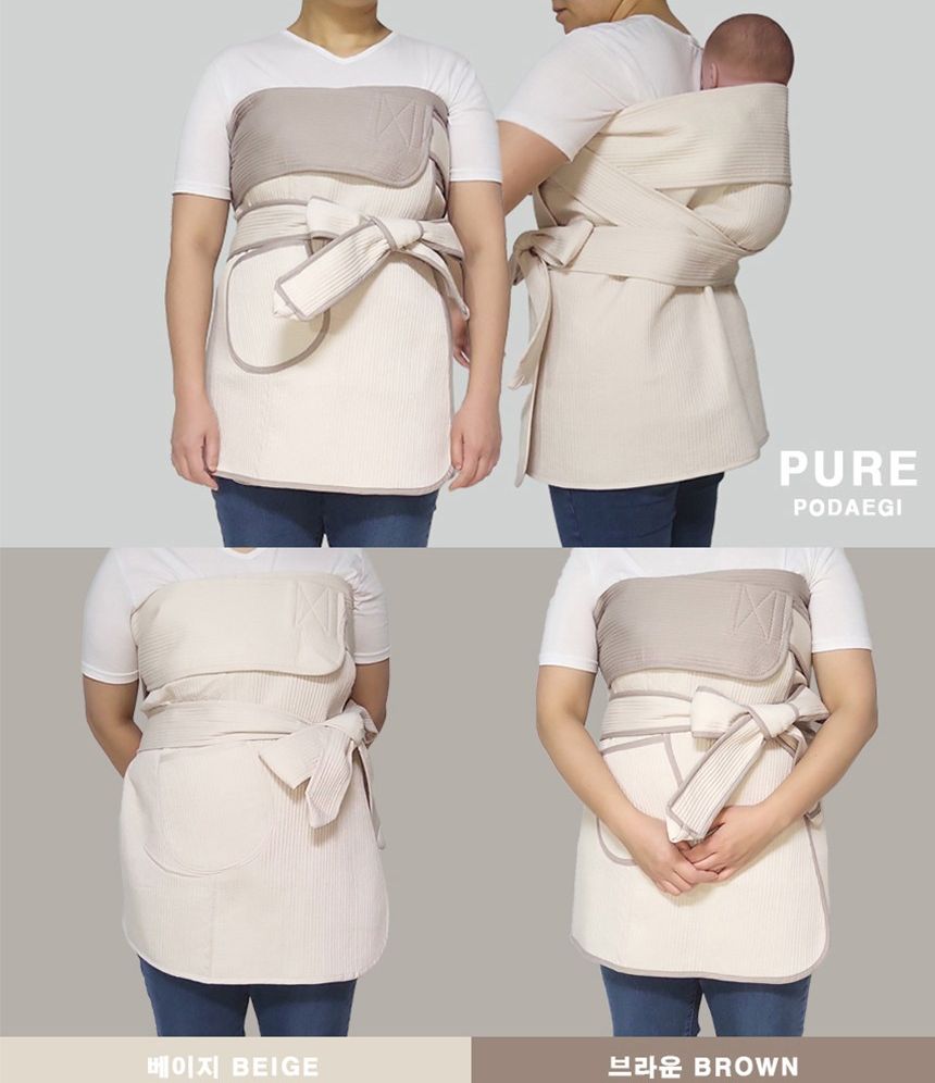 Traditional Korean baby carriers (podaegi) promote close bonding between parent and baby while providing proper spinal support for newborns. The warmth and closeness help babies feel secure and often leads to faster sleep onset.