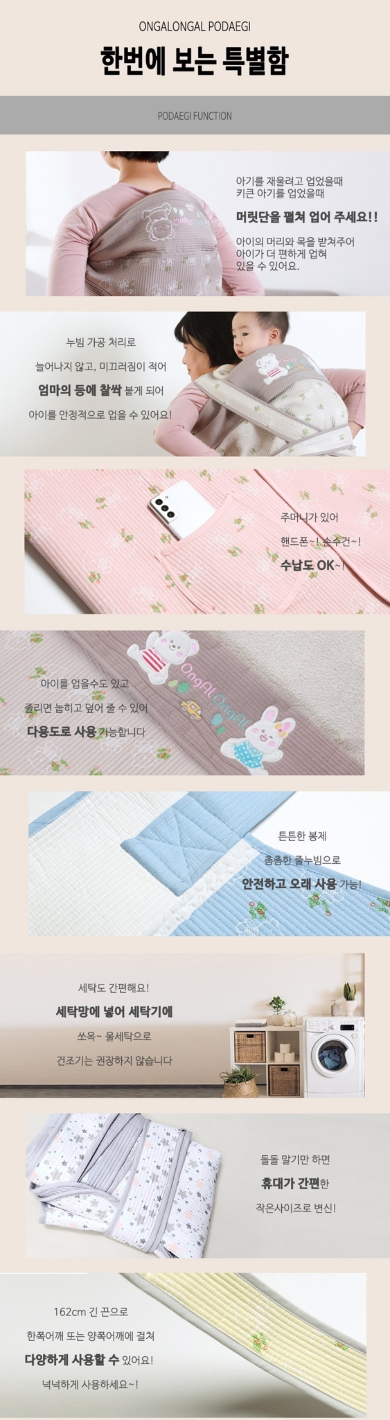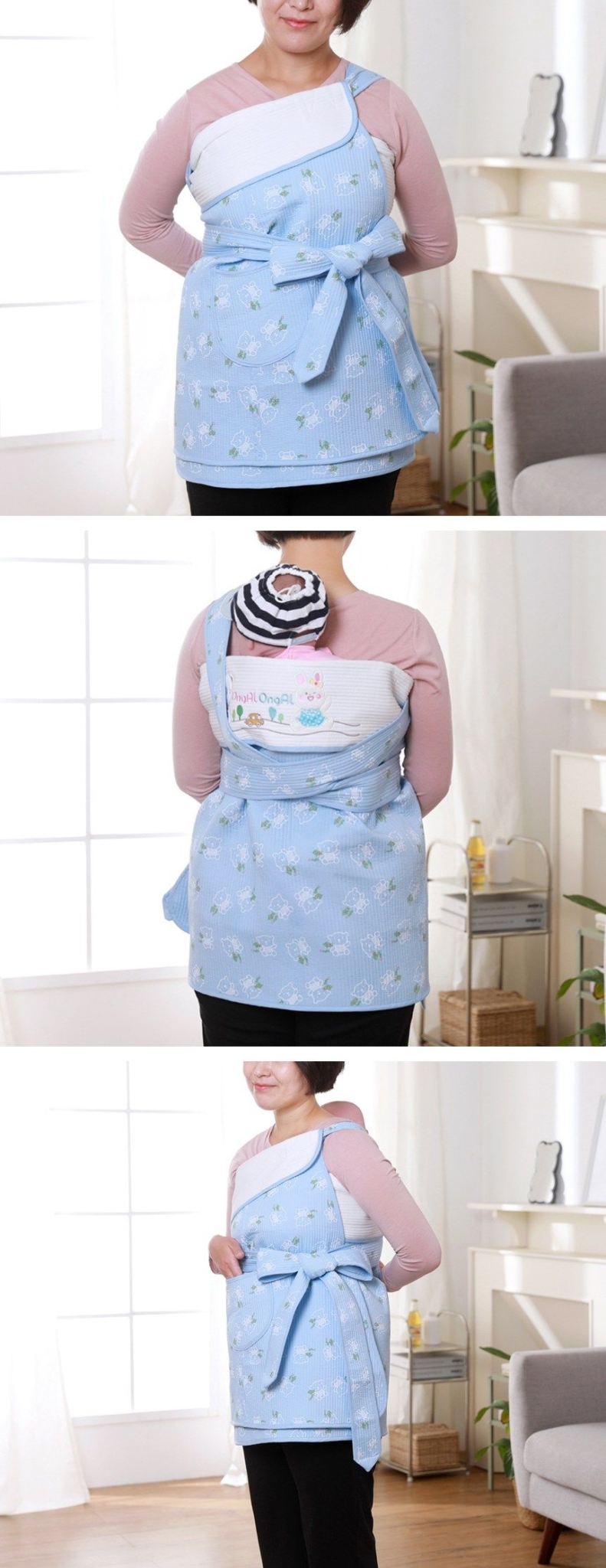 Traditional Korean baby carrier (Podaegi) featuring an adorable bear pattern design. Perfect for parents who want to keep their baby close while having hands free for daily activities.