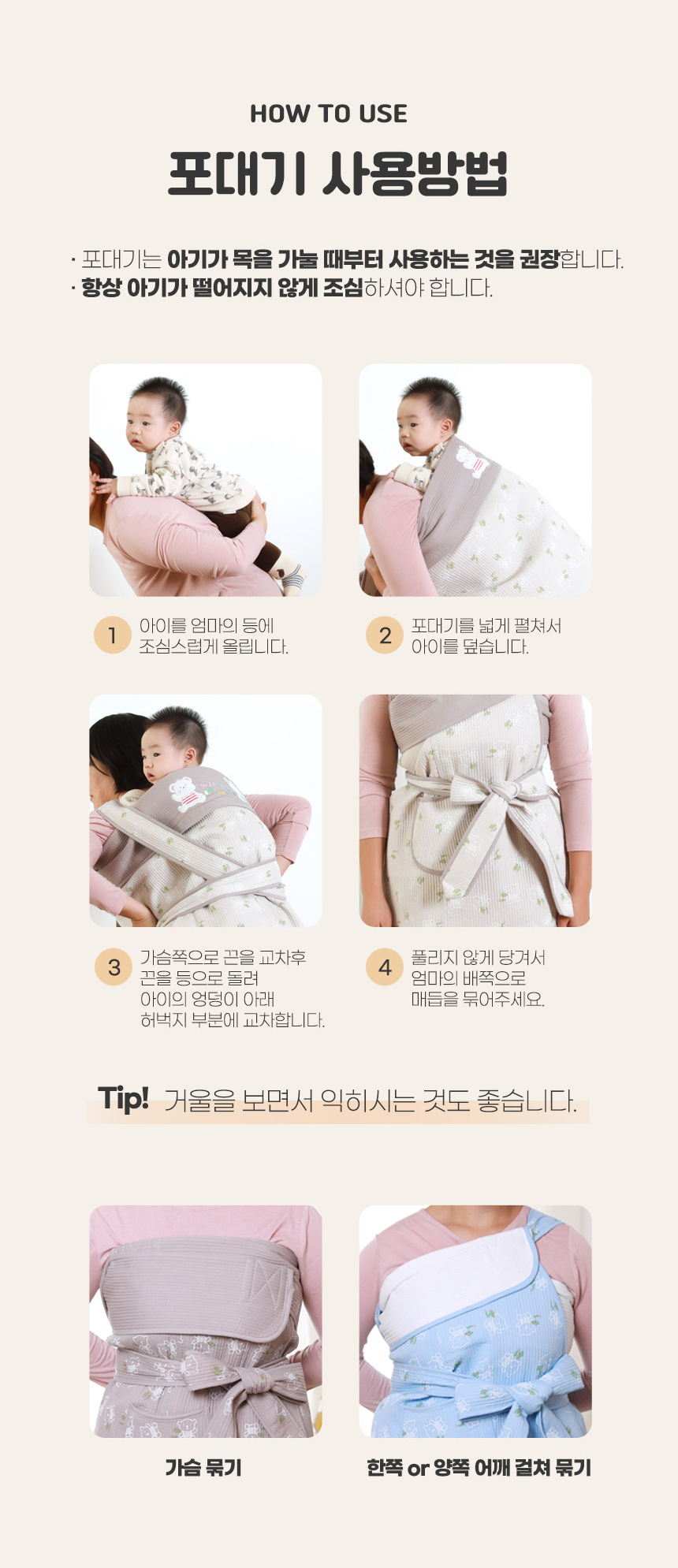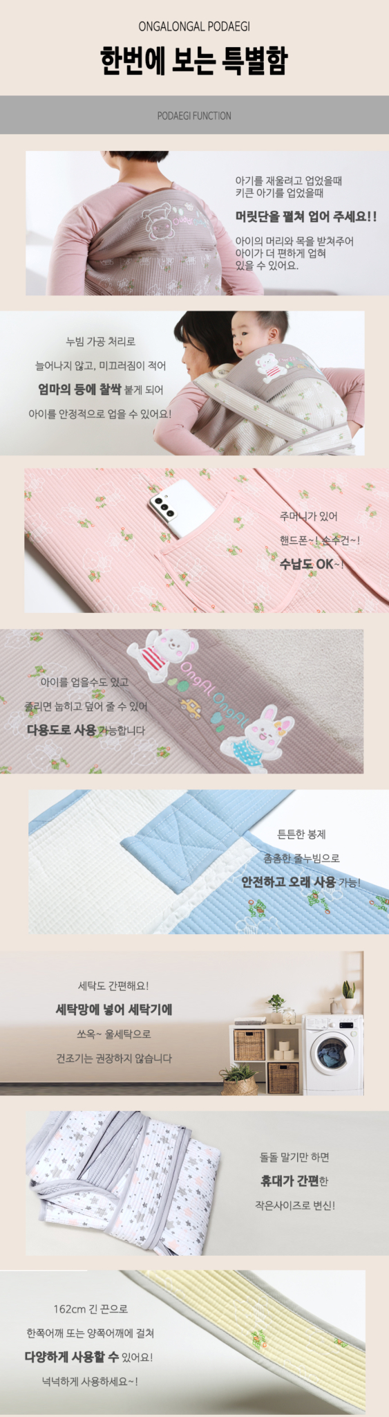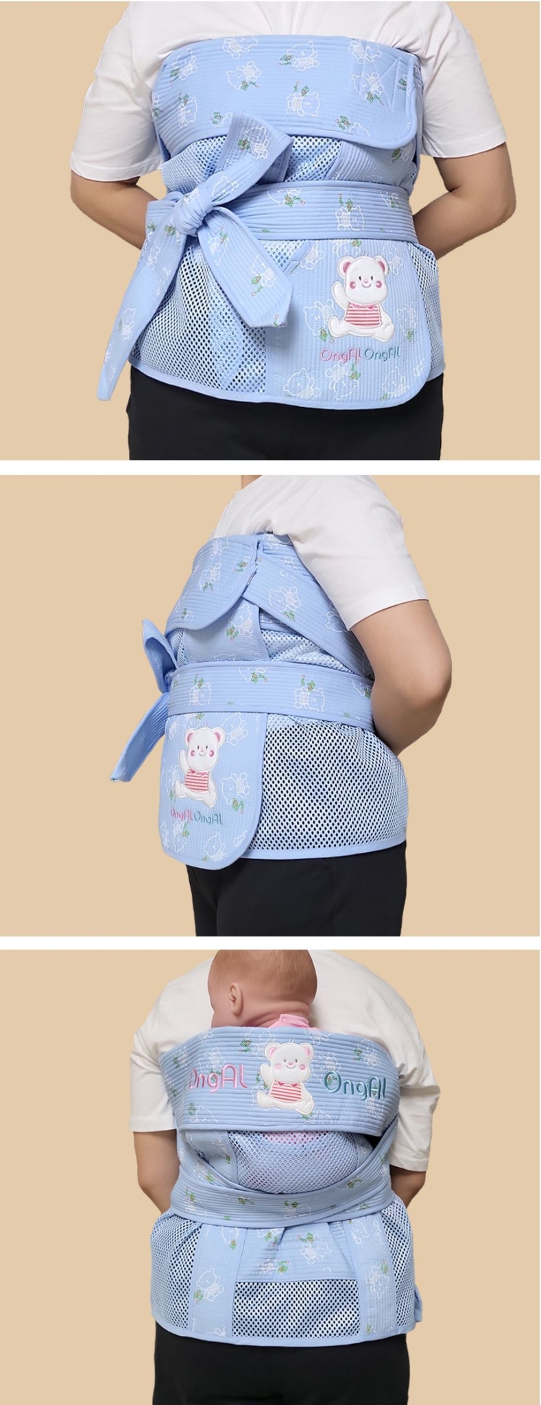 A traditional Korean baby carrier (Podaegi) designed for modern parents. This mesh version is perfect for warm weather, keeping both parent and baby cool and comfortable.