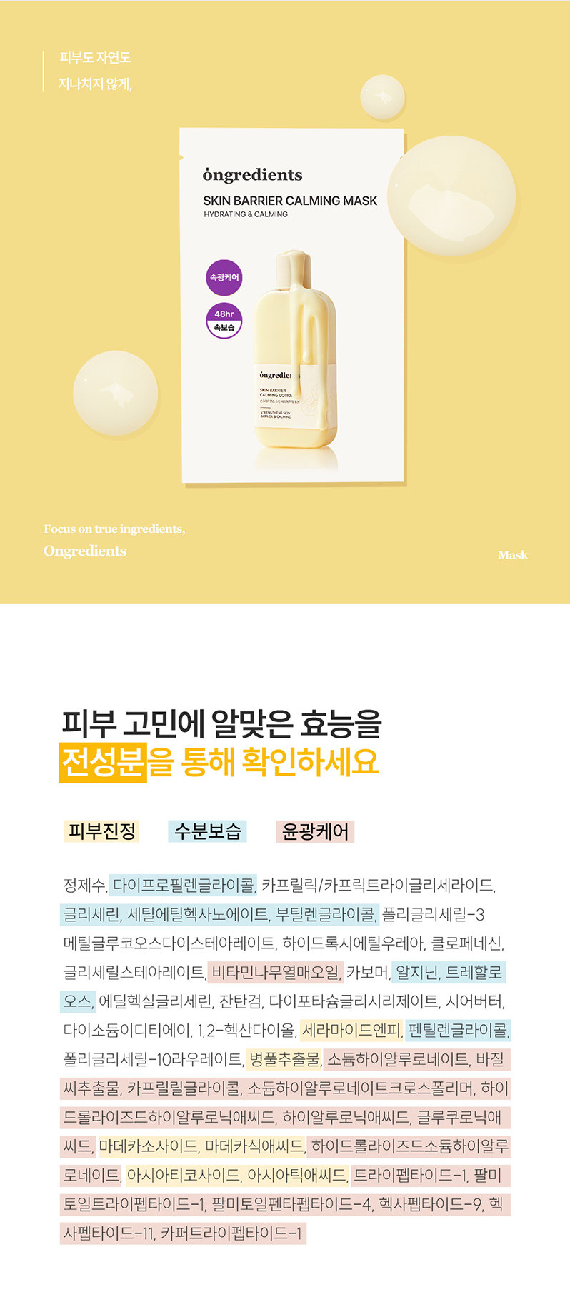 The Ongredients Skin Barrier Calming Mask is a soothing sheet mask that delivers intense moisture that lasts up to 48 hours while calming dry, sensitive skin and smoothing rough texture. Enriched with a 9-Peptide Complex, Ceramides, and Hyaluronic Acid, it strengthens your skin’s barrier and replenishes hydration. Centella Asiatica and Panthenol help reduce redness and provide immediate relief from irritation, making it suitable for sensitive skin.