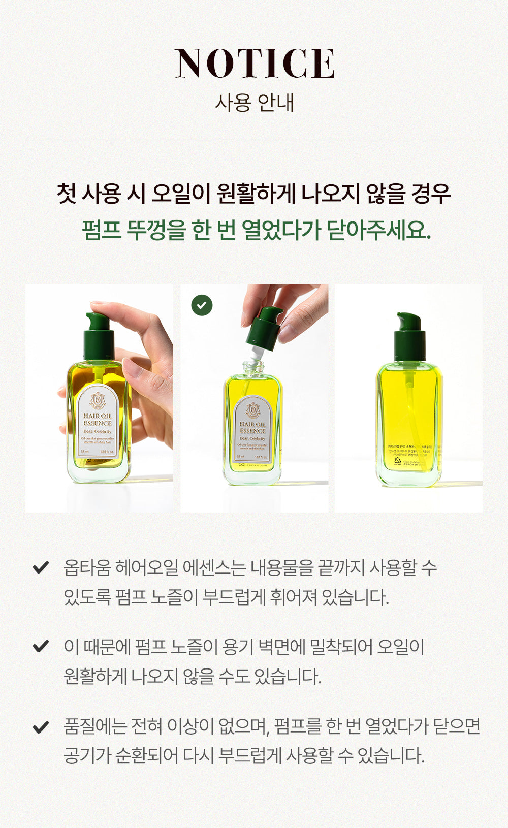 For first-time use, if the oil does not dispense smoothly, simply unscrew the pump cap once and reattach to allow air circulation.