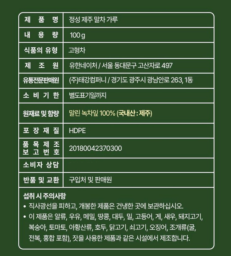 | Product Name | Organic Friends Jeju Premium Matcha Powder |
