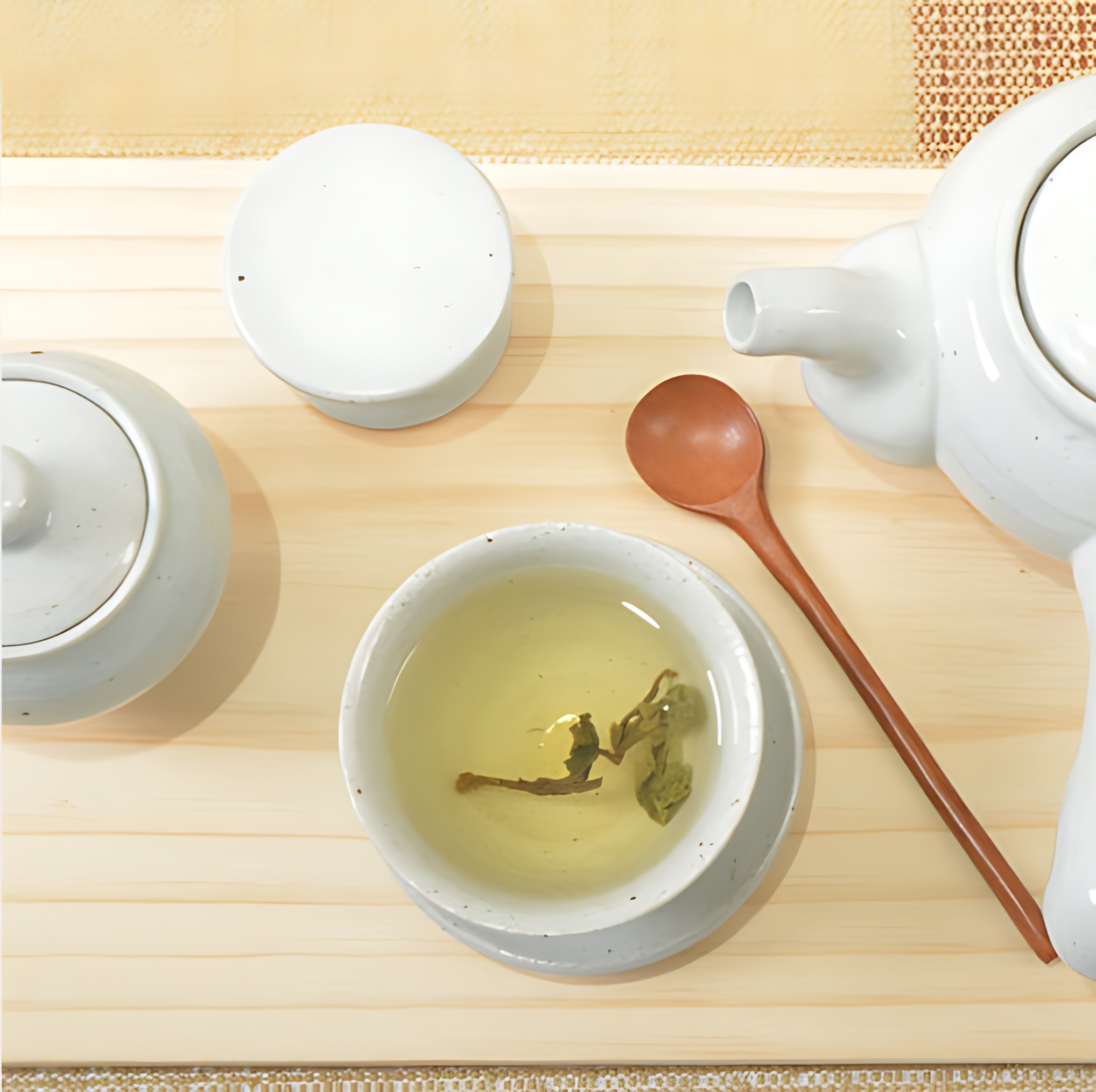 During brewing, the tea reveals its clear golden hue and subtle sweetness, creating a clean and refreshing drinking experience.