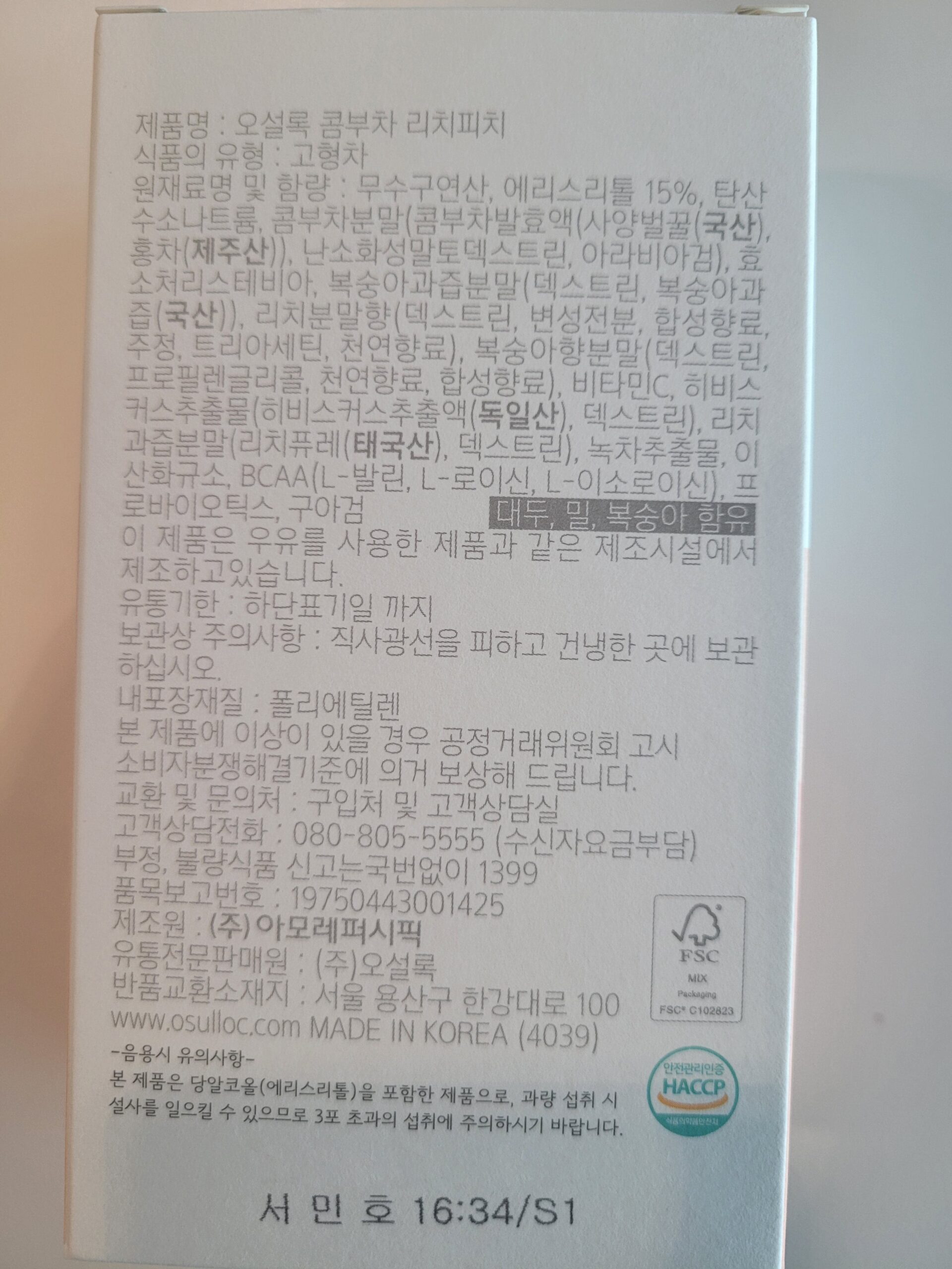 【OSULLOC Kombucha LYCHEE PEACH】