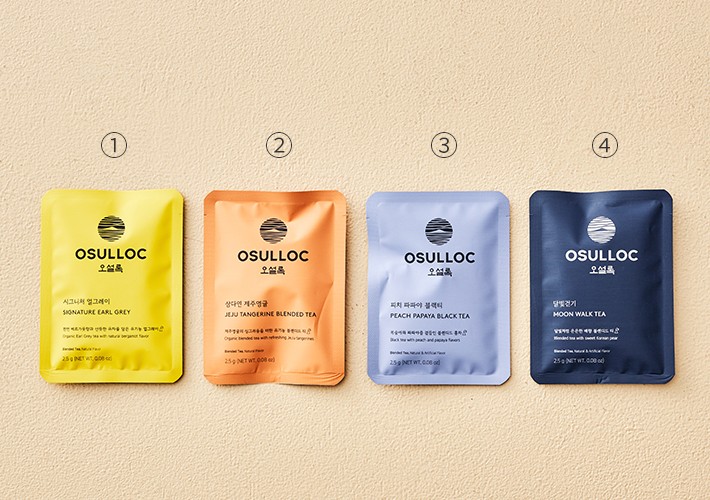 | 4. Moon Walk (Dalbit-geotgi) | 2.5g x 3 Tea Bags | A signature OSULLOC blend of Jeju post-fermented tea, sweet Korean pear (Dol-bae), and a touch of star candy for a subtle, lingering sweetness. |