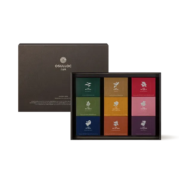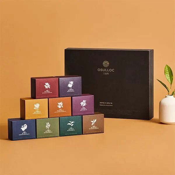 Indulge in the luxury of daily tea rituals with the OSULLOC Premium Tea Collection 90. This curated set of 9 diverse tea blends, packaged in an elegant and sturdy premium box, offers a perfect balance of tradition, flavor, and sophistication. A thoughtful gift for tea enthusiasts or a delightful treat for yourself.