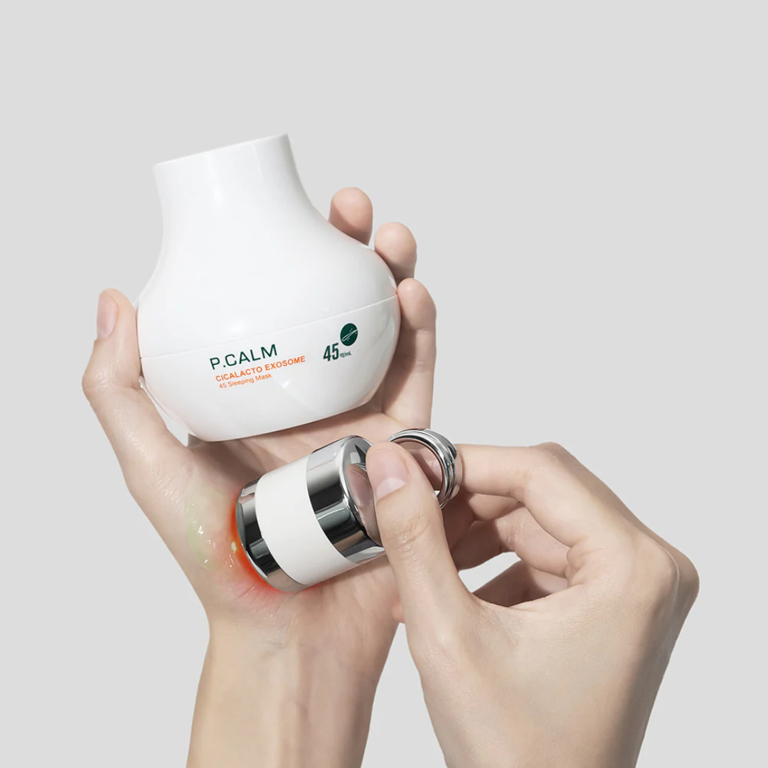 The P.CALM Cicalacto Exosome 45 Sleeping Mask is an advanced overnight treatment featuring CICALACTO EXOSOME technology with 0.05% Spicule for intensive scar and blemish care. This 7-day night care cream targets both fresh and old acne marks while you sleep.