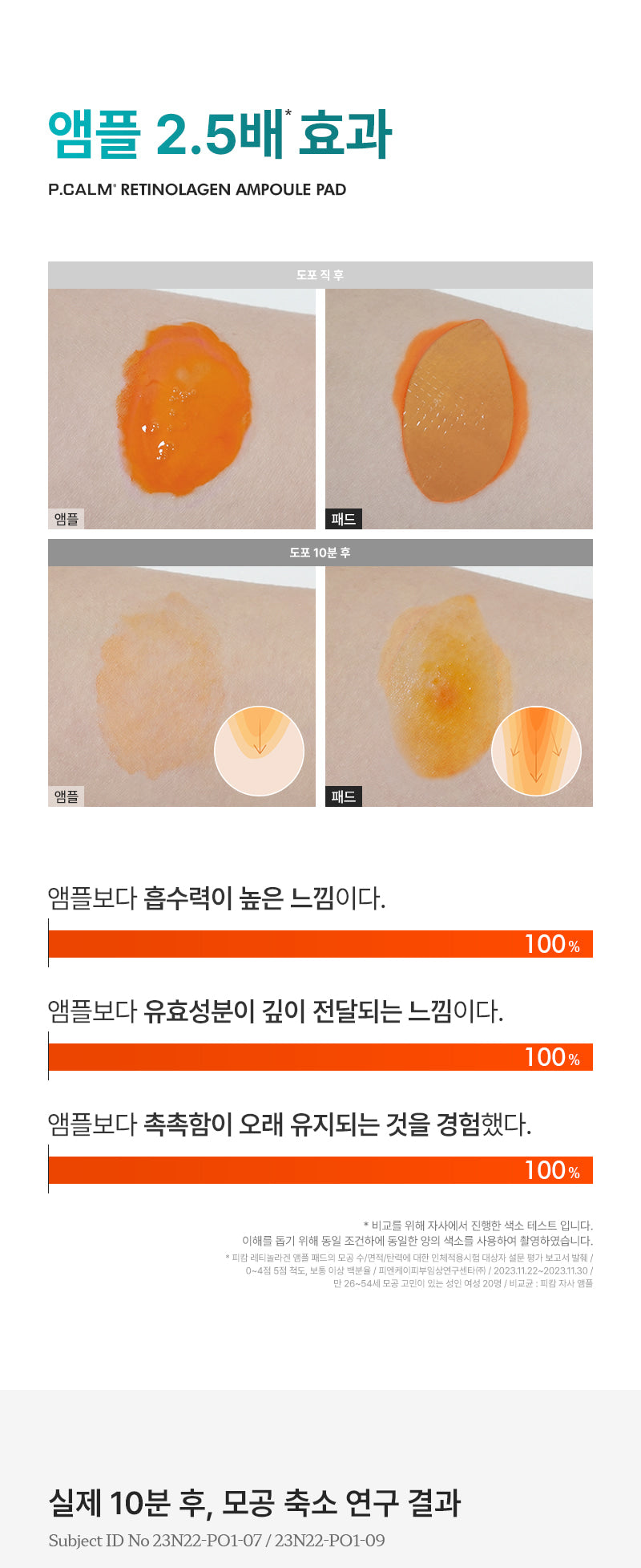 Our patented formula (Patent 10-2686879) for wrinkle and pore improvement combines Retinol and Collagen to deliver superior skin elasticity. The low-irritation pore elasticity pad is perfect for those looking to reduce pore number, improve elasticity, and refine pore areas.