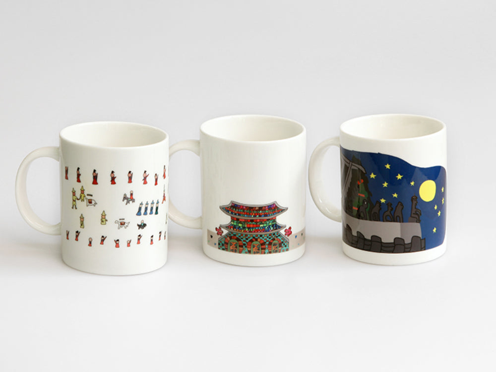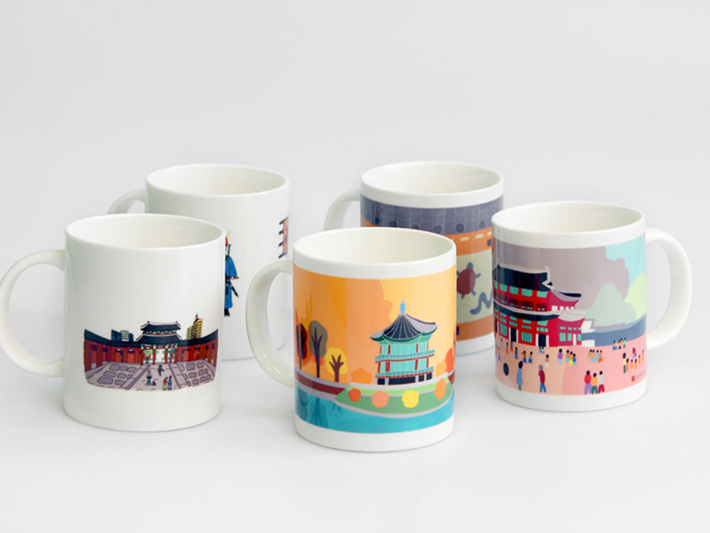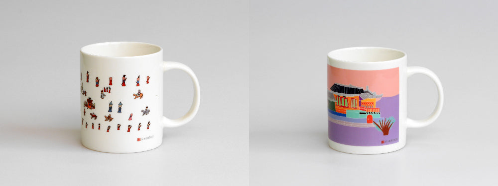 Each mug features artwork inspired by different aspects of Korea’s royal culture, making it not just a drinkware item but a meaningful cultural keepsake. The collection includes: